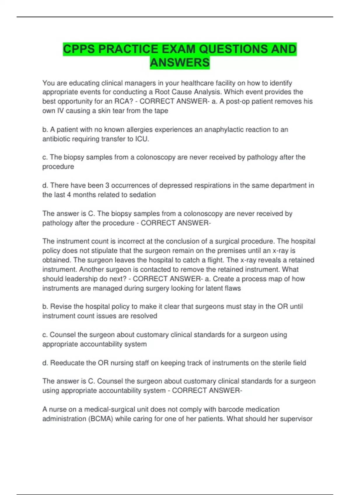 CPPS Practice Exam QUESTIONS AND ANSWERS