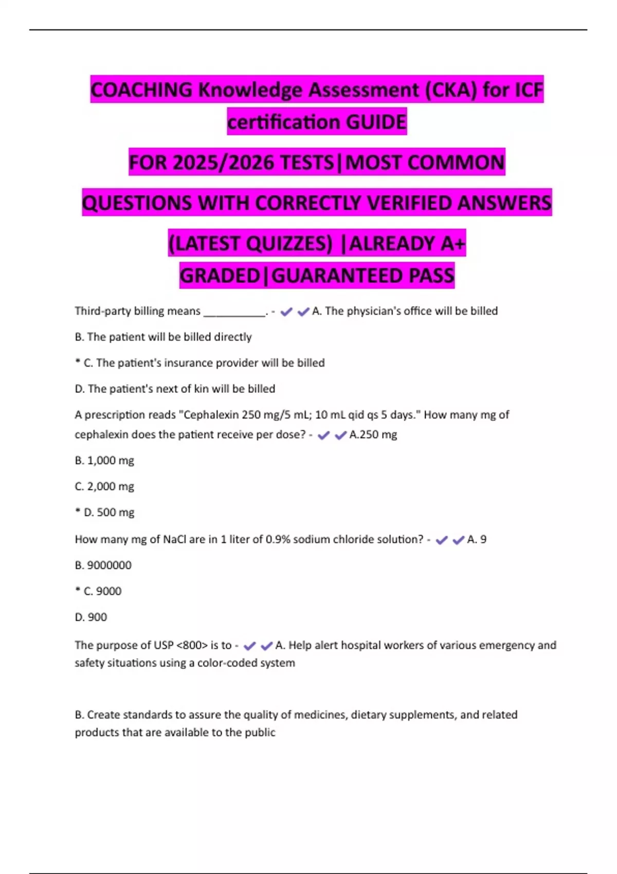 COACHING Knowledge Assessment (CKA) for ICF certification GUIDE FOR 2025/2026 TESTS|MOST COMMON QUESTIONS WITH CORRECTLY VERIFIED ANSWERS (LATEST QUIZZES) |ALREADY A+ GRADED|GUARANTEED PASS