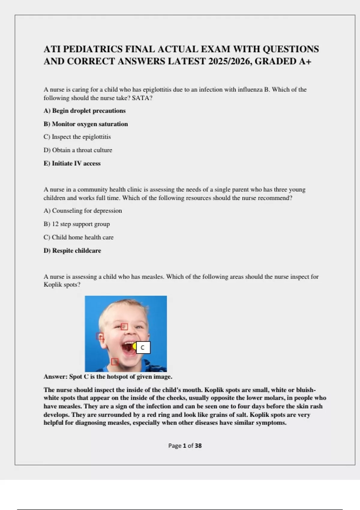 ATI PEDIATRICS FINAL ACTUAL EXAM WITH QUESTIONS