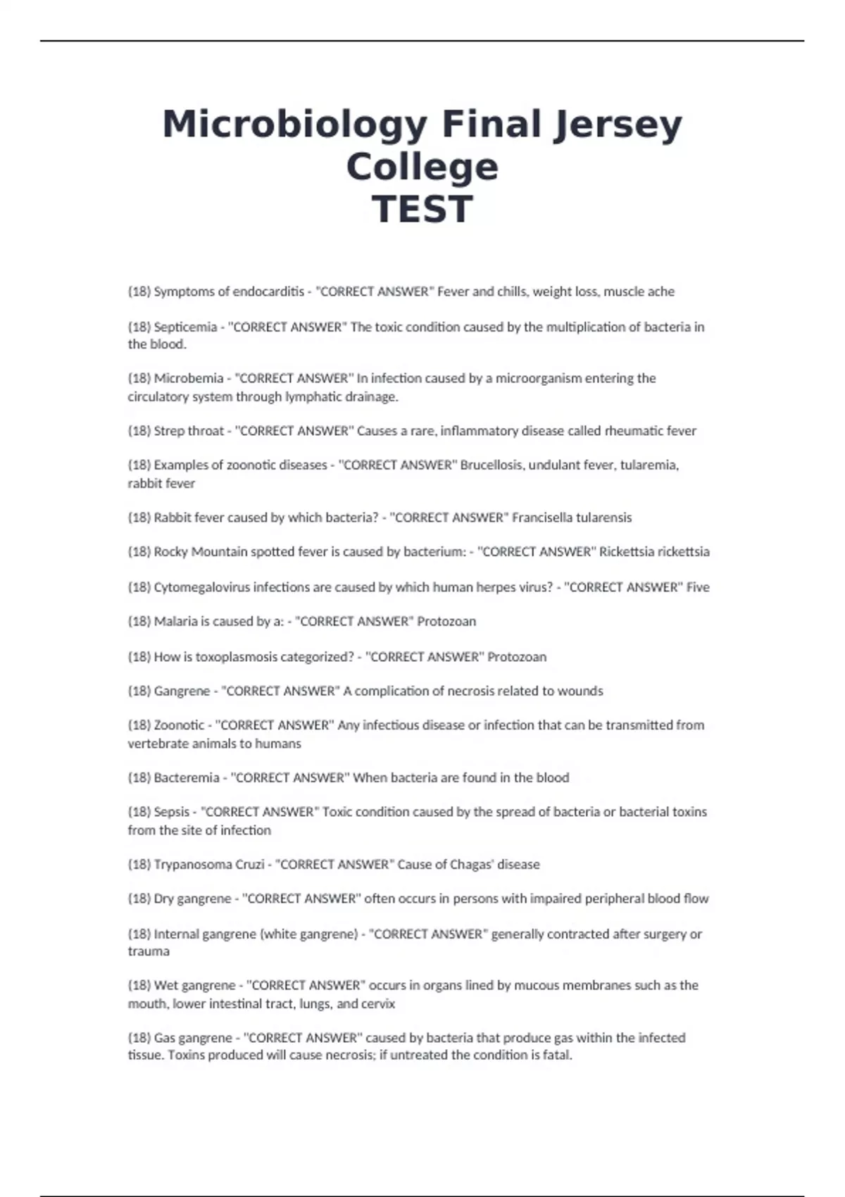 (18) Sepsis - "CORRECT ANSWER" Toxic condition caused by the spread of bacteria or bacterial toxins