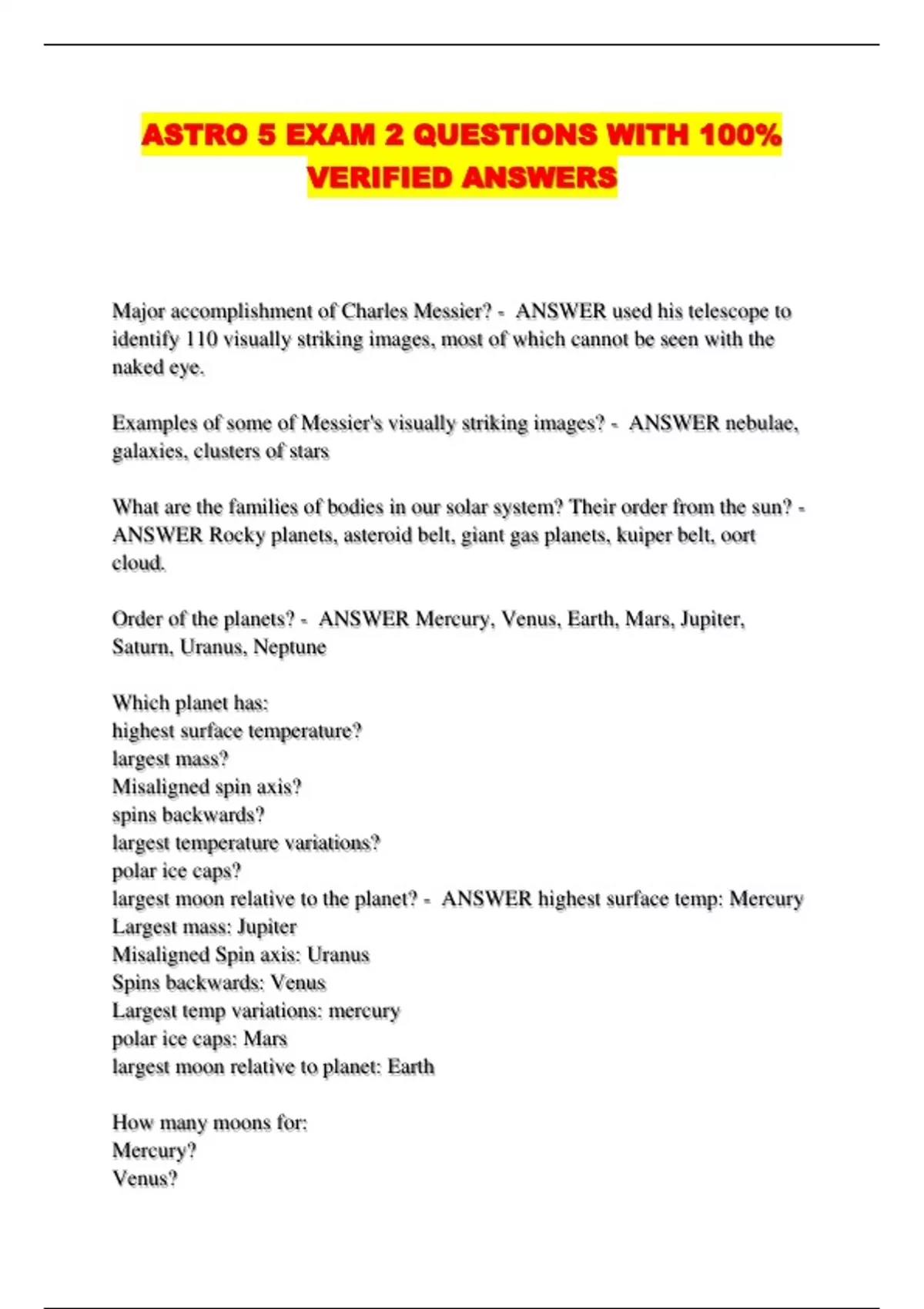 ASTRO 5 EXAM 2 QUESTIONS WITH 100%