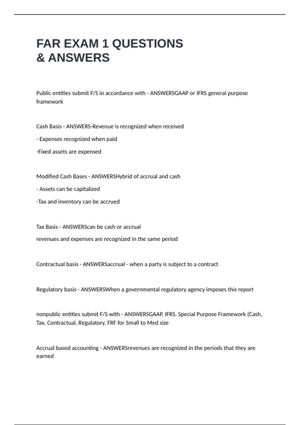 Cash Basis - ANSWERS-Revenue is recognized when received