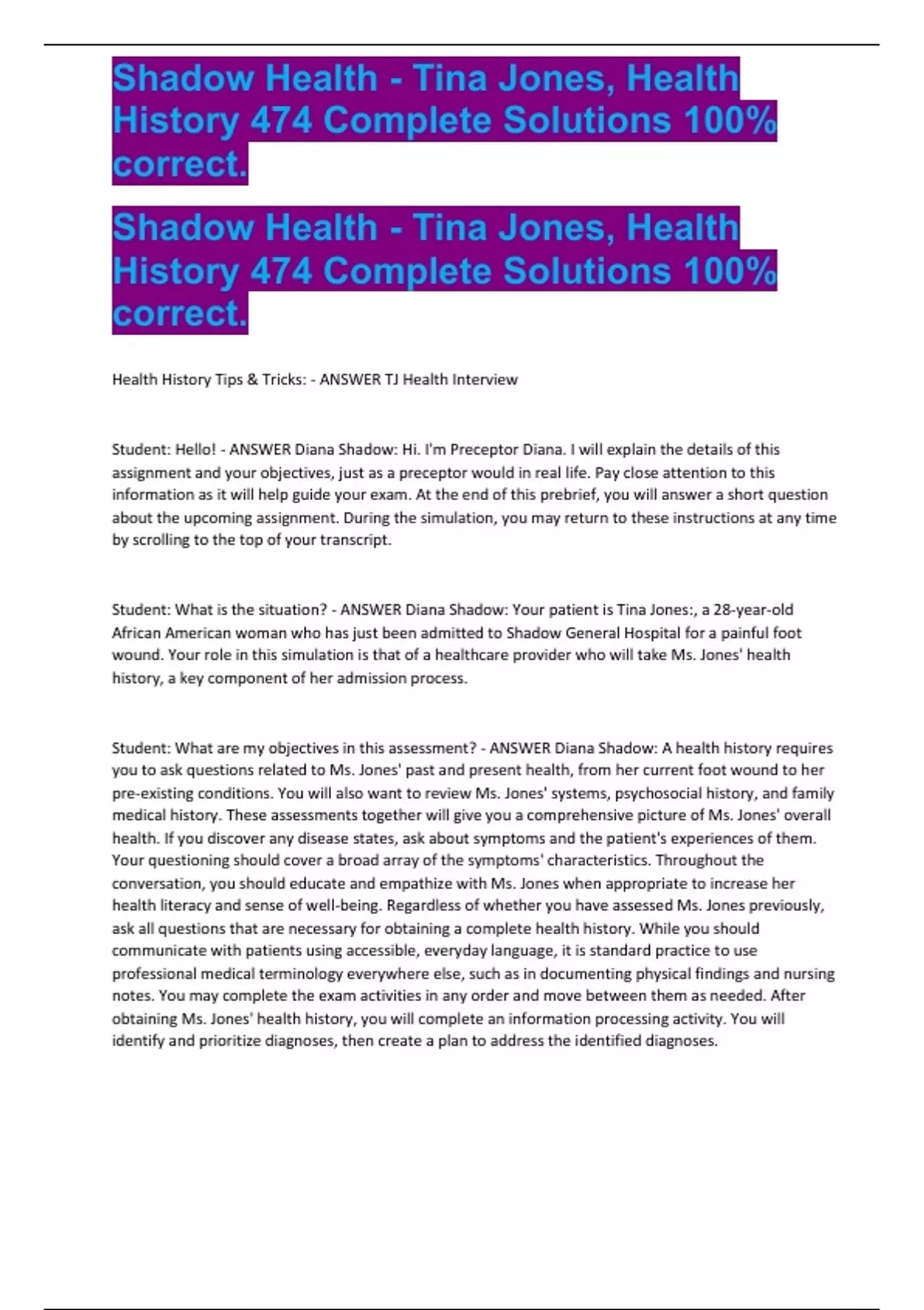 Student: What is the situation? - ANSWER Diana Shadow: Your patient is Tina Jones:, a 28-year-old