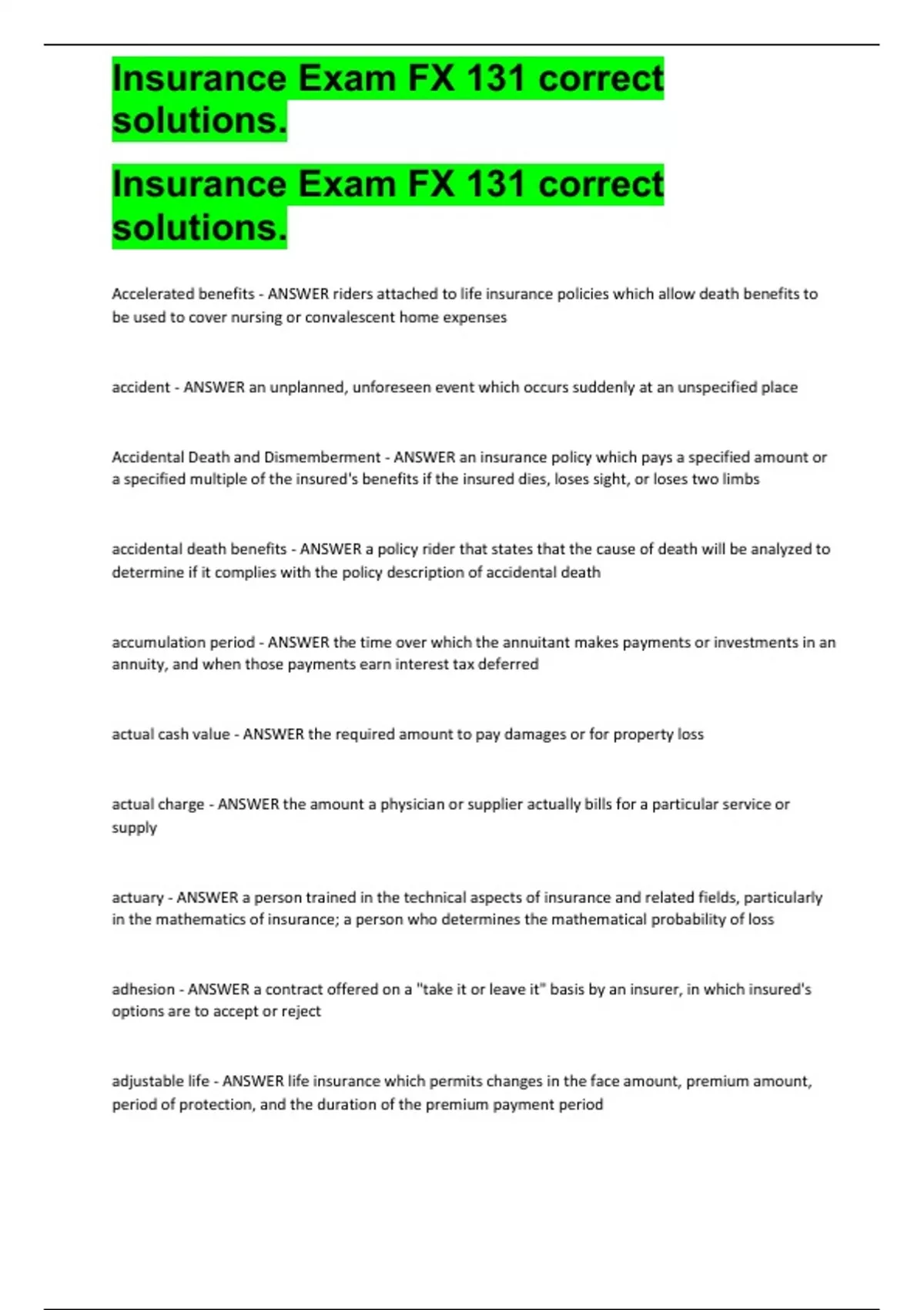 Insurance Exam FX 131 correct solutions. Insurance Exam FX 131 correct solutions. Insurance Exam FX 131 correct solutions. Insurance Exam FX 131 correct solutions.