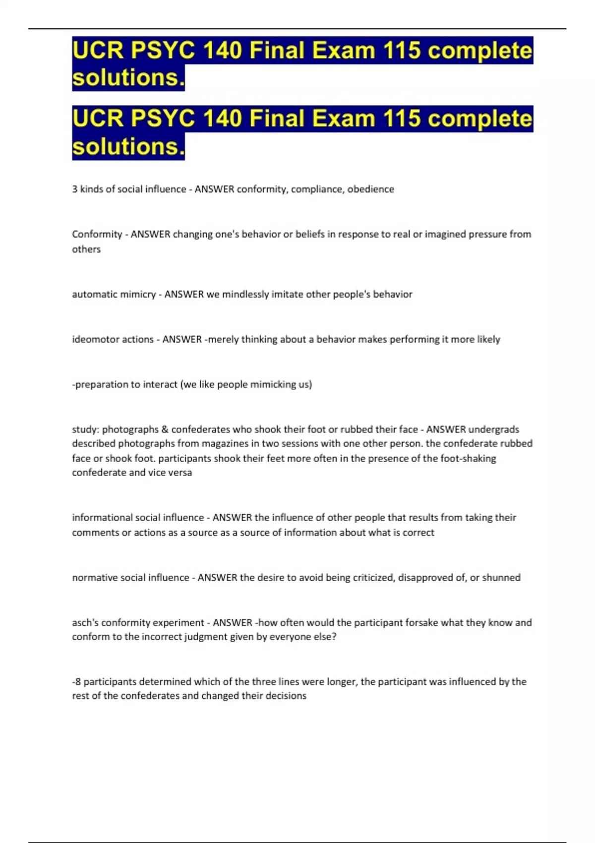 UCR PSYC 140 Final Exam 115 complete solutions. UCR PSYC 140 Final Exam 115 complete solutions. UCR PSYC 140 Final Exam 115 complete solutions. UCR PSYC 140 Final Exam 115 complete solutions.