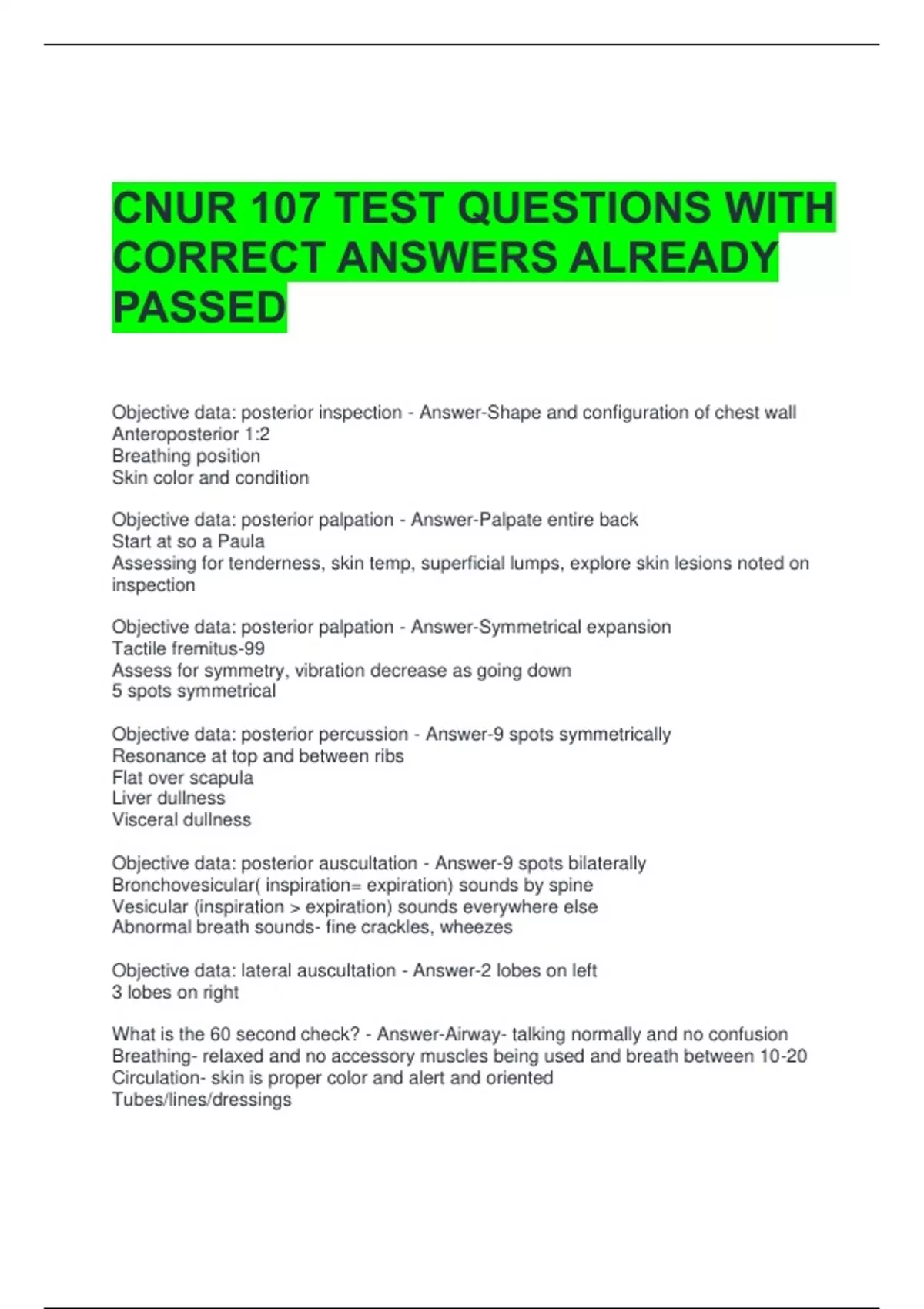 CNUR 107 TEST QUESTIONS WITH CORRECT ANSWERS ALREADY PASSED