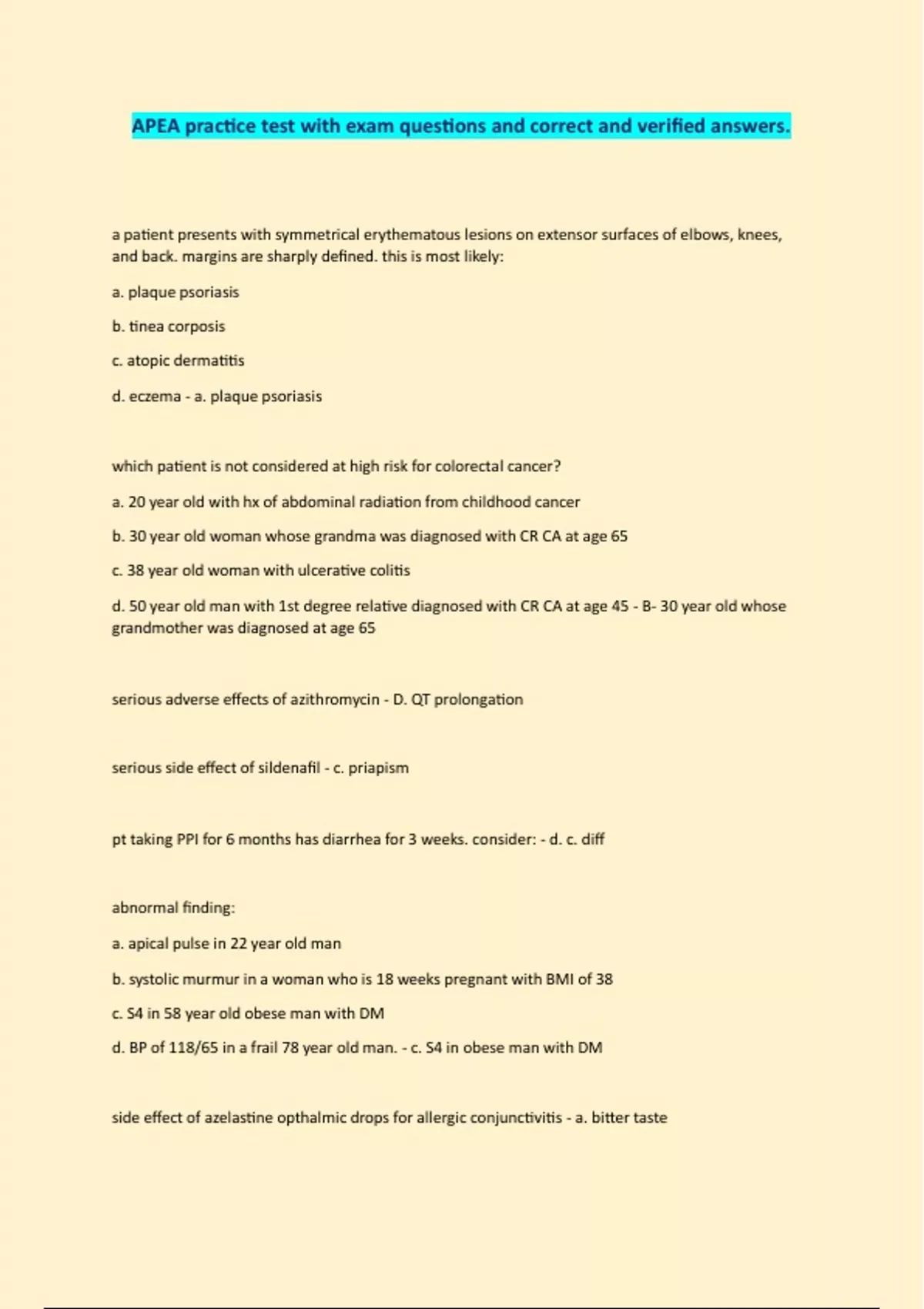 APEA Pre-Predictor Test Questions And Verified Answers.
