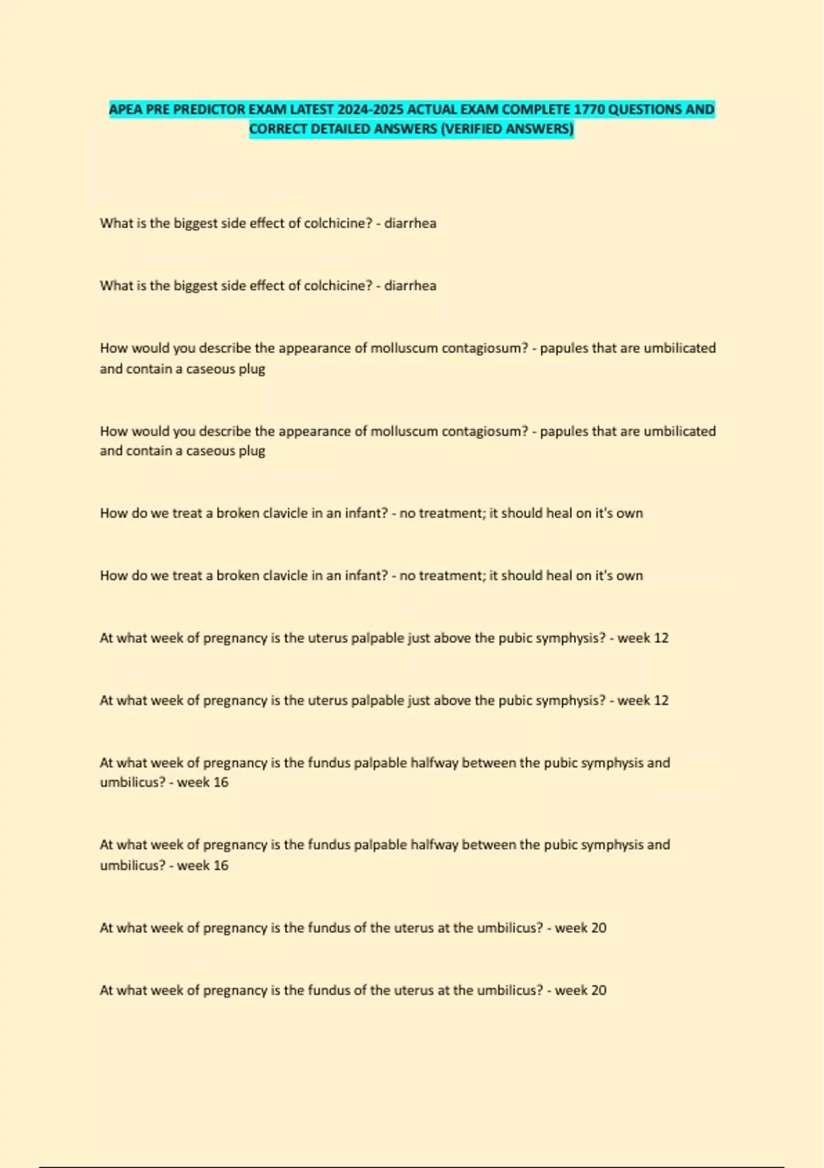 APEA Pre-Predictor Test Questions And Verified Answers.