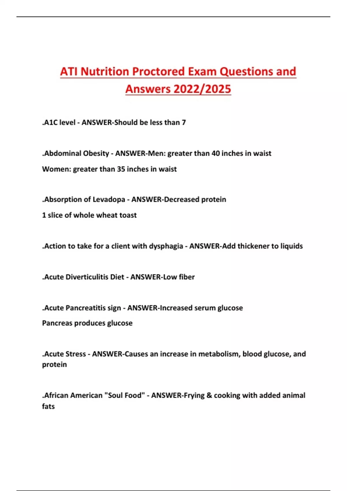 .A1C level - ANSWER-Should be less than 7