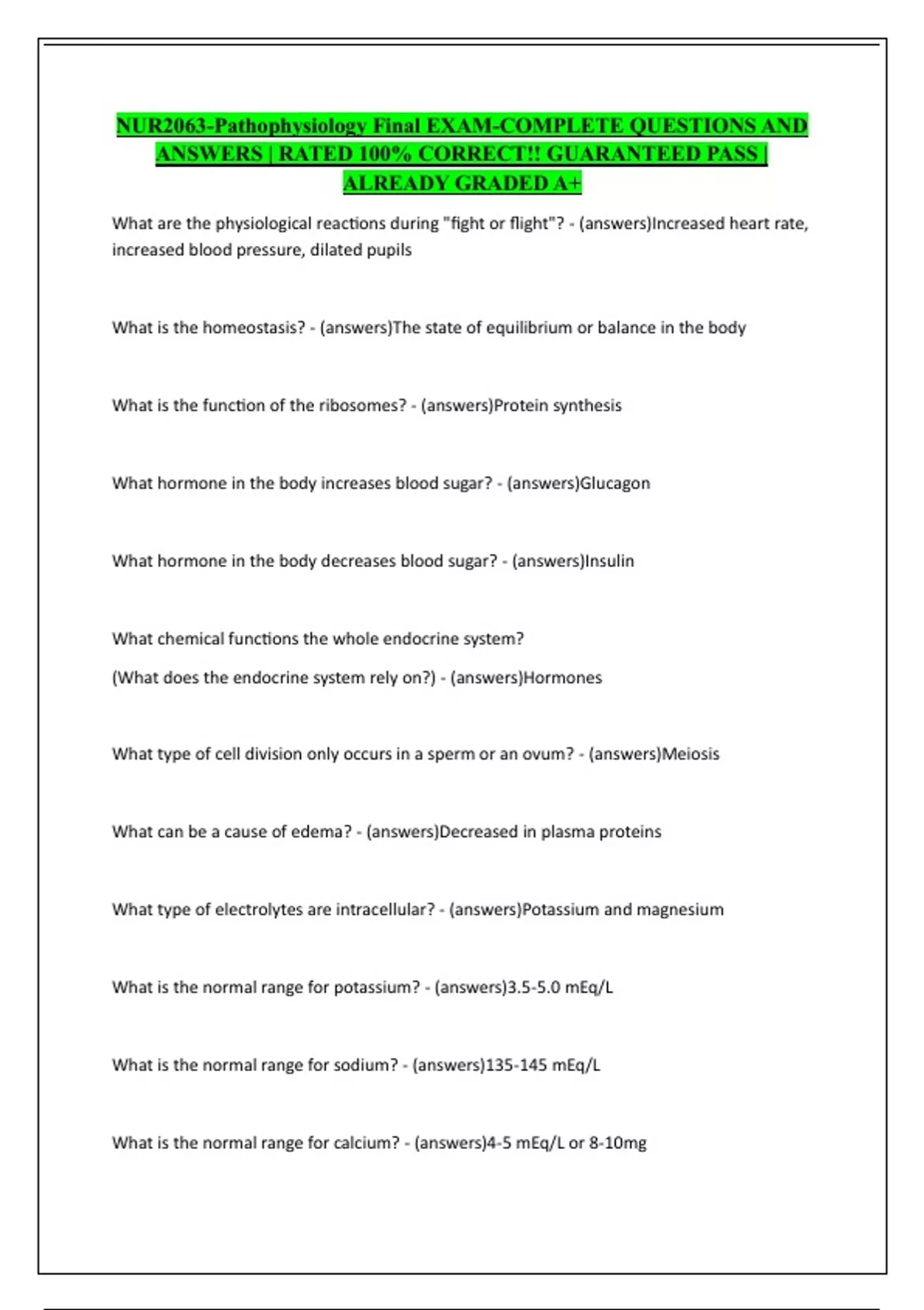 NUR2063-Pathophysiology Final EXAM-COMPLETE QUESTIONS AND