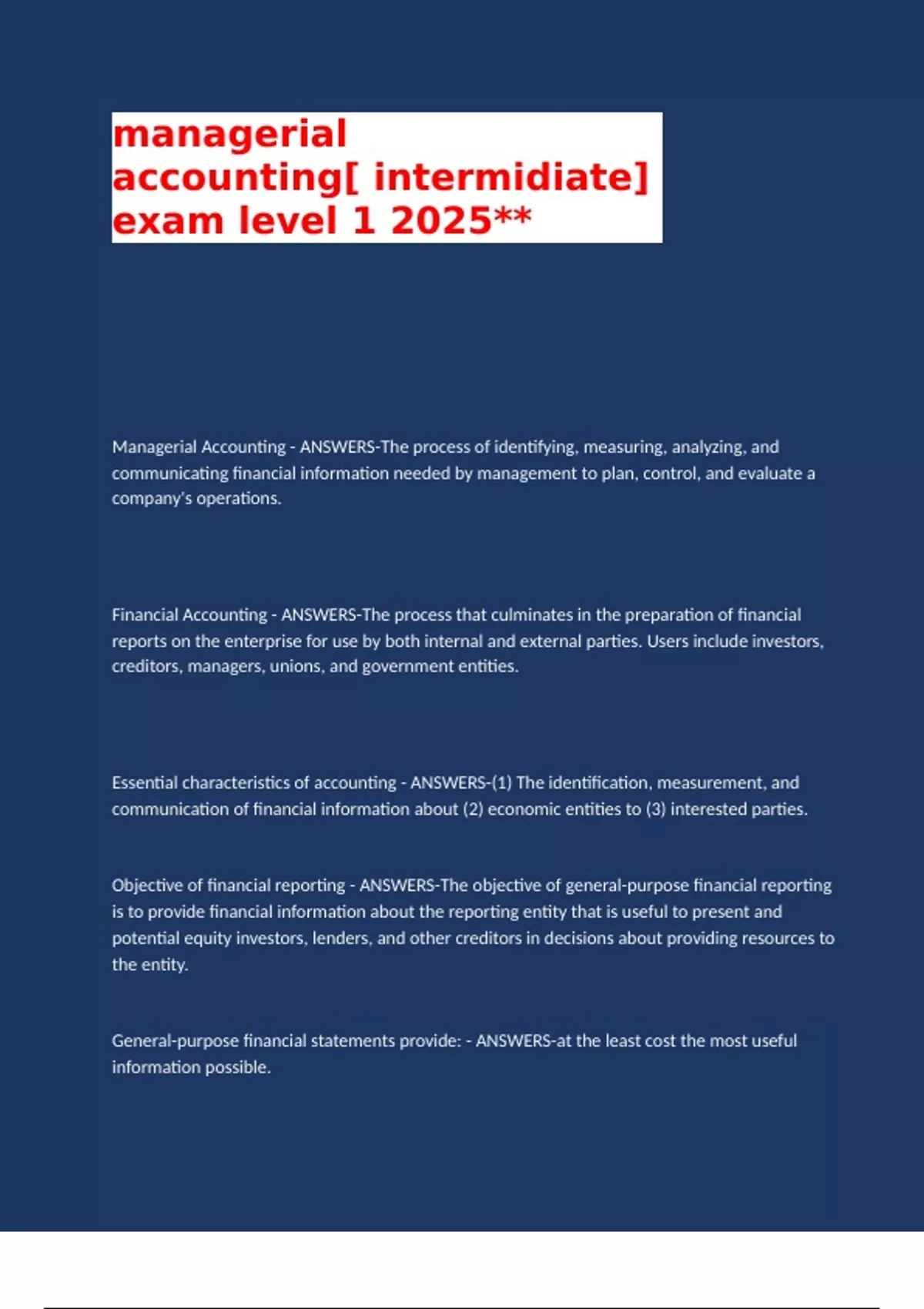 Managerial Accounting - ANSWERS-The process of identifying, measuring, analyzing, and
