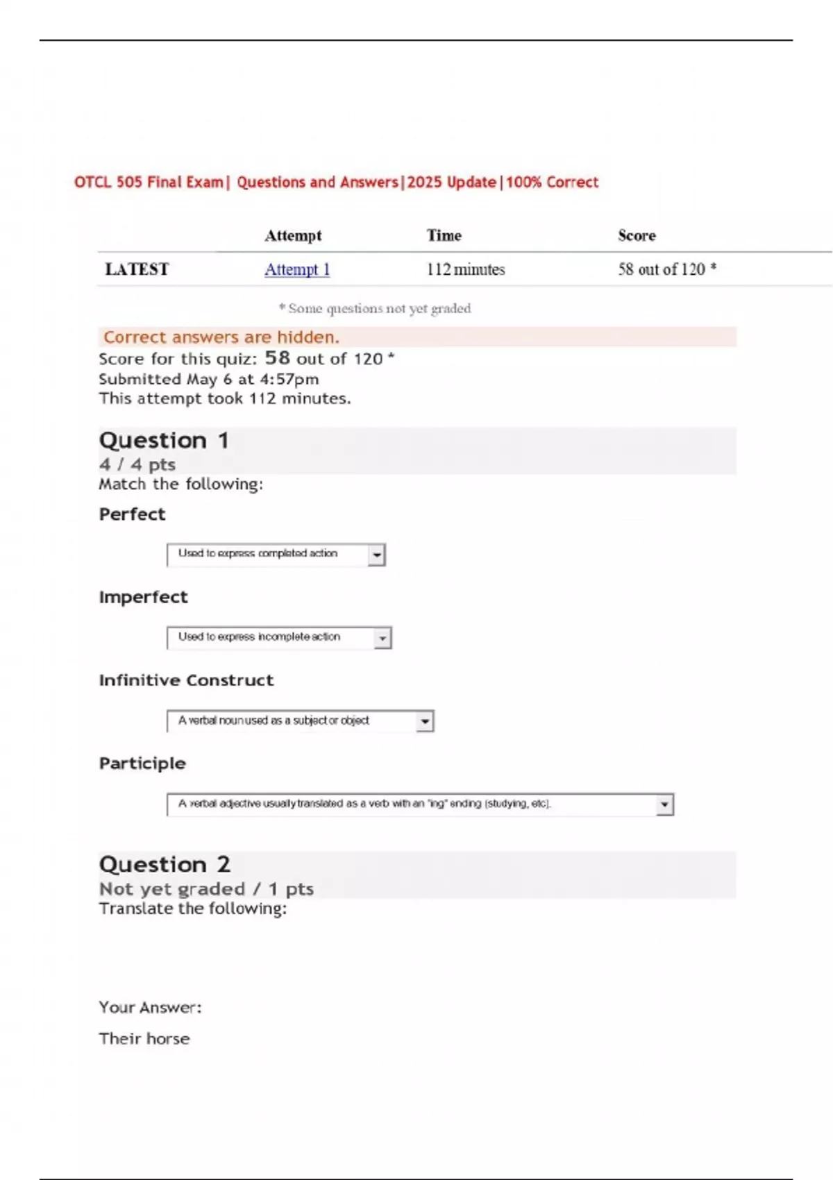 otcl 505 final exam questions and answers