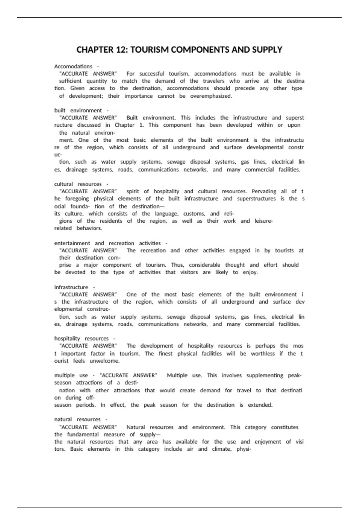 CHAPTER 12: TOURISM COMPONENTS AND SUPPLY