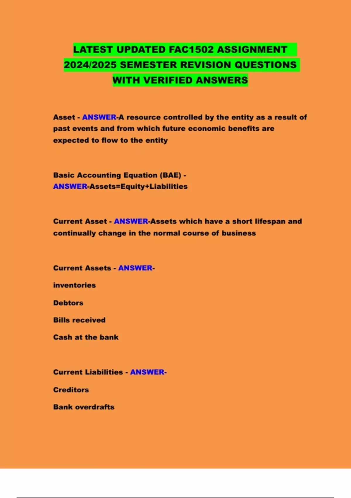 LATEST UPDATED FAC1502 ASSIGNMENT 2024/2025 SEMESTER REVISION QUESTIONS WITH VERIFIED ANSWERS