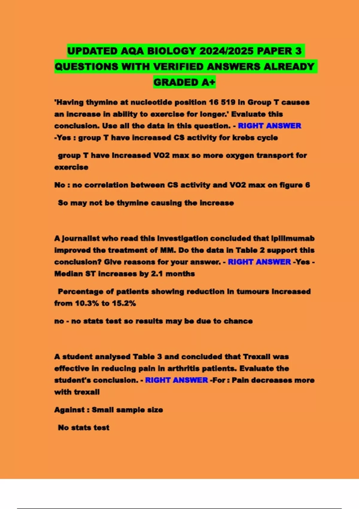 UPDATED AQA BIOLOGY 2024/2025 PAPER 3 QUESTIONS WITH VERIFIED ANSWERS ALREADY GRADED A+