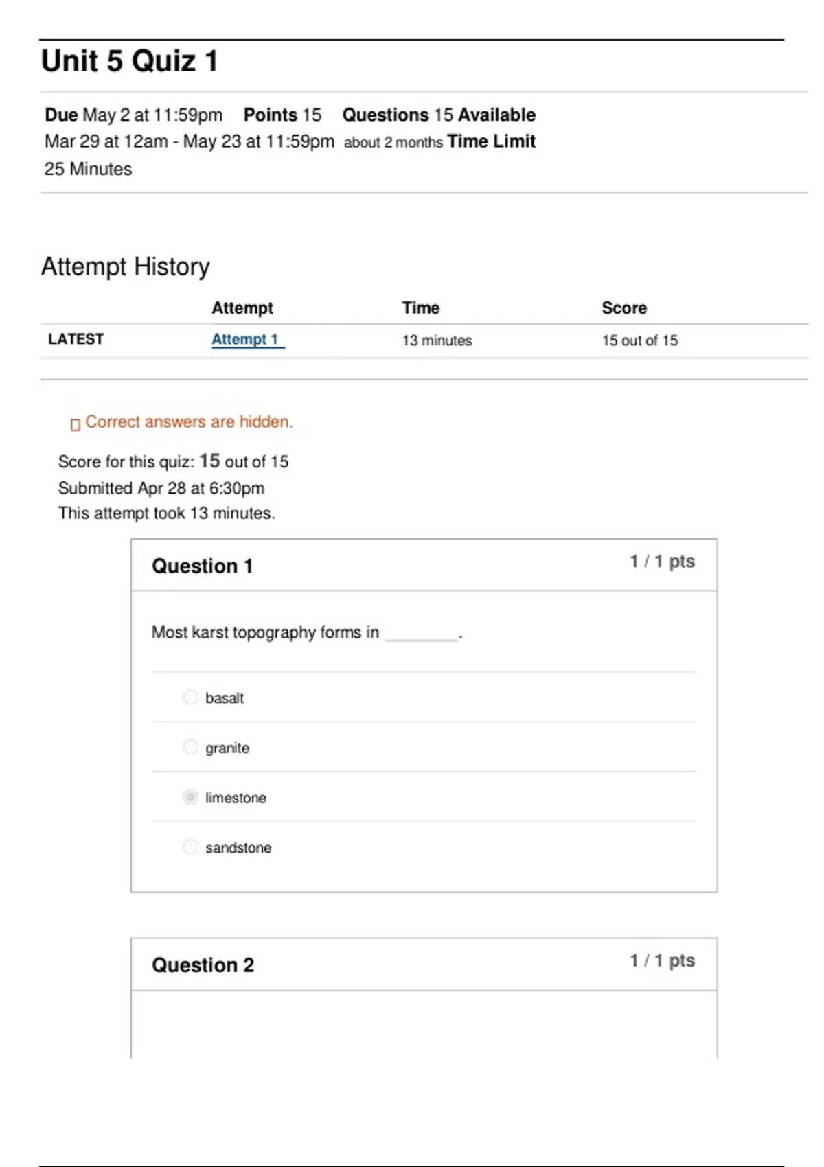 Due May 2 at 11:59pm Points 15 Questions 15 Available