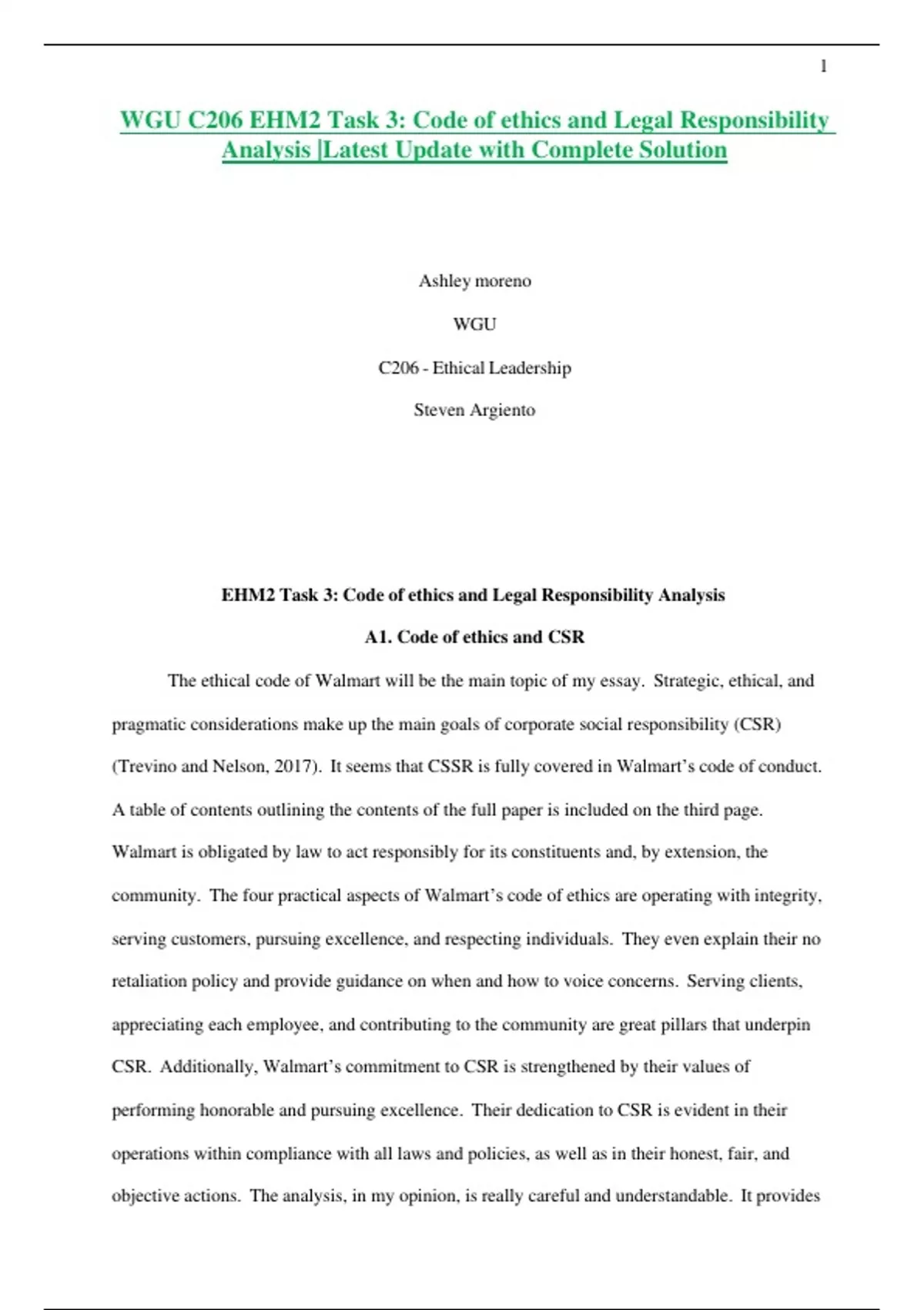 WGU C206 EHM2 Task 3: Code of ethics and Legal Responsibility
