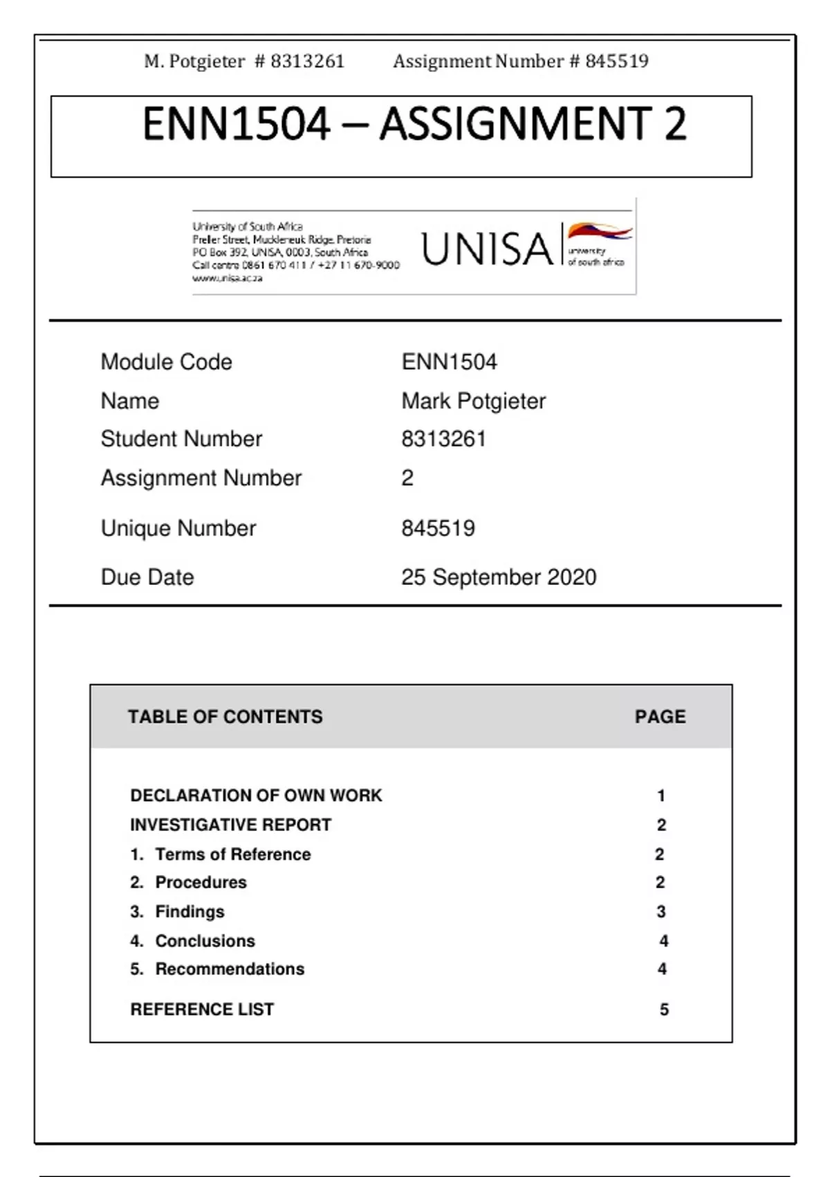 ✓ I have read and understood Unisa’s Policy for Copyright Infringement and Plagiarism,and