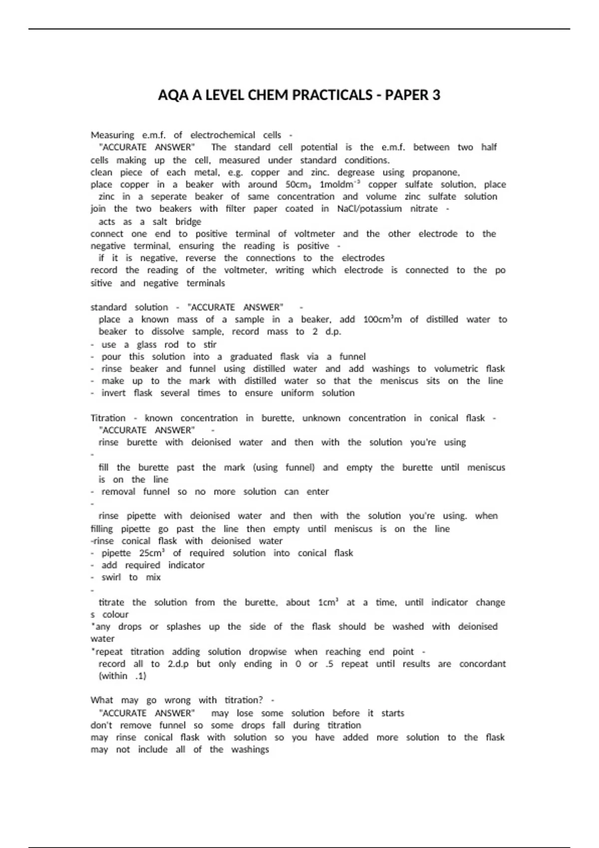 AQA A LEVEL CHEM PRACTICALS - PAPER 3