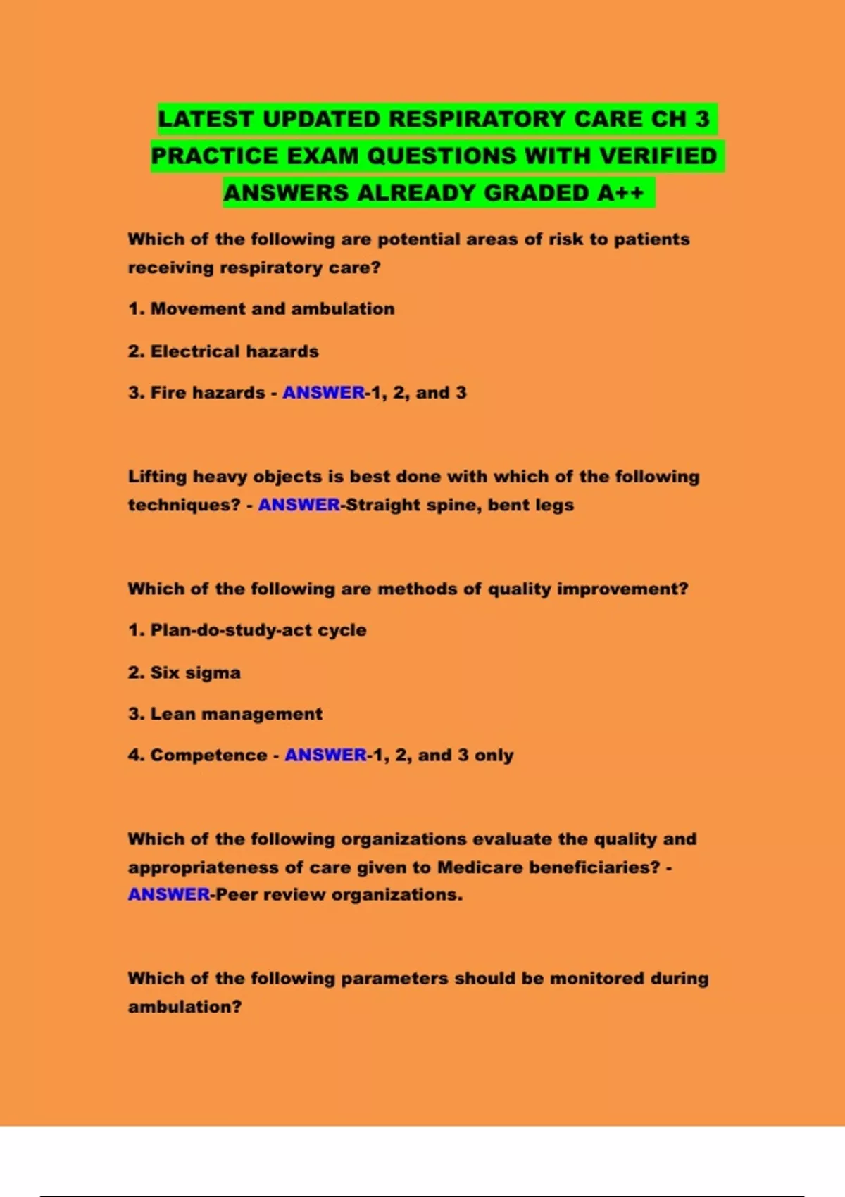 LATEST UPDATED RESPIRATORY CARE CH 3 PRACTICE EXAM QUESTIONS WITH VERIFIED ANSWERS ALREADY GRADED A++