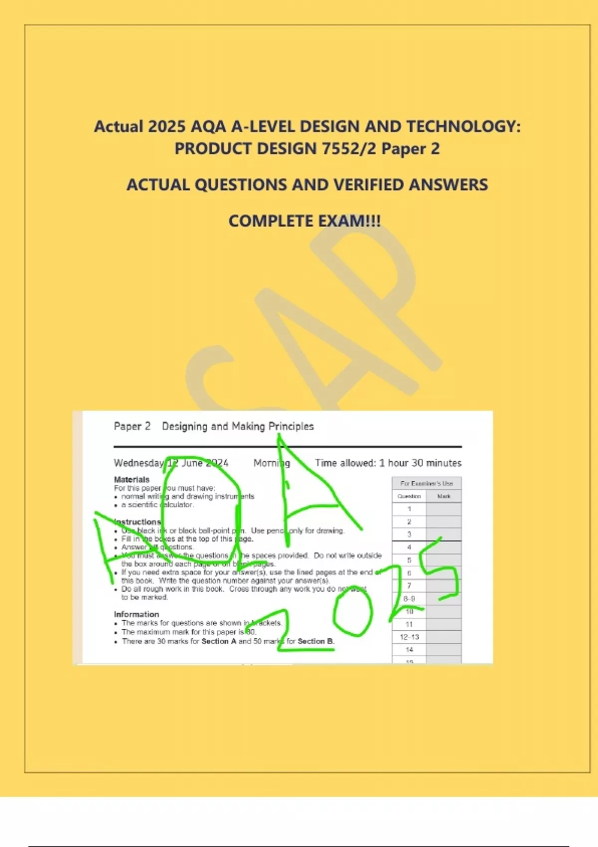 Actual 2025 AQA A-LEVEL DESIGN AND TECHNOLOGY: PRODUCT DESIGN 7552/2 Paper 2 ACTUAL QUESTIONS AND VERIFIED ANSWERS COMPLETE EXAM!!!