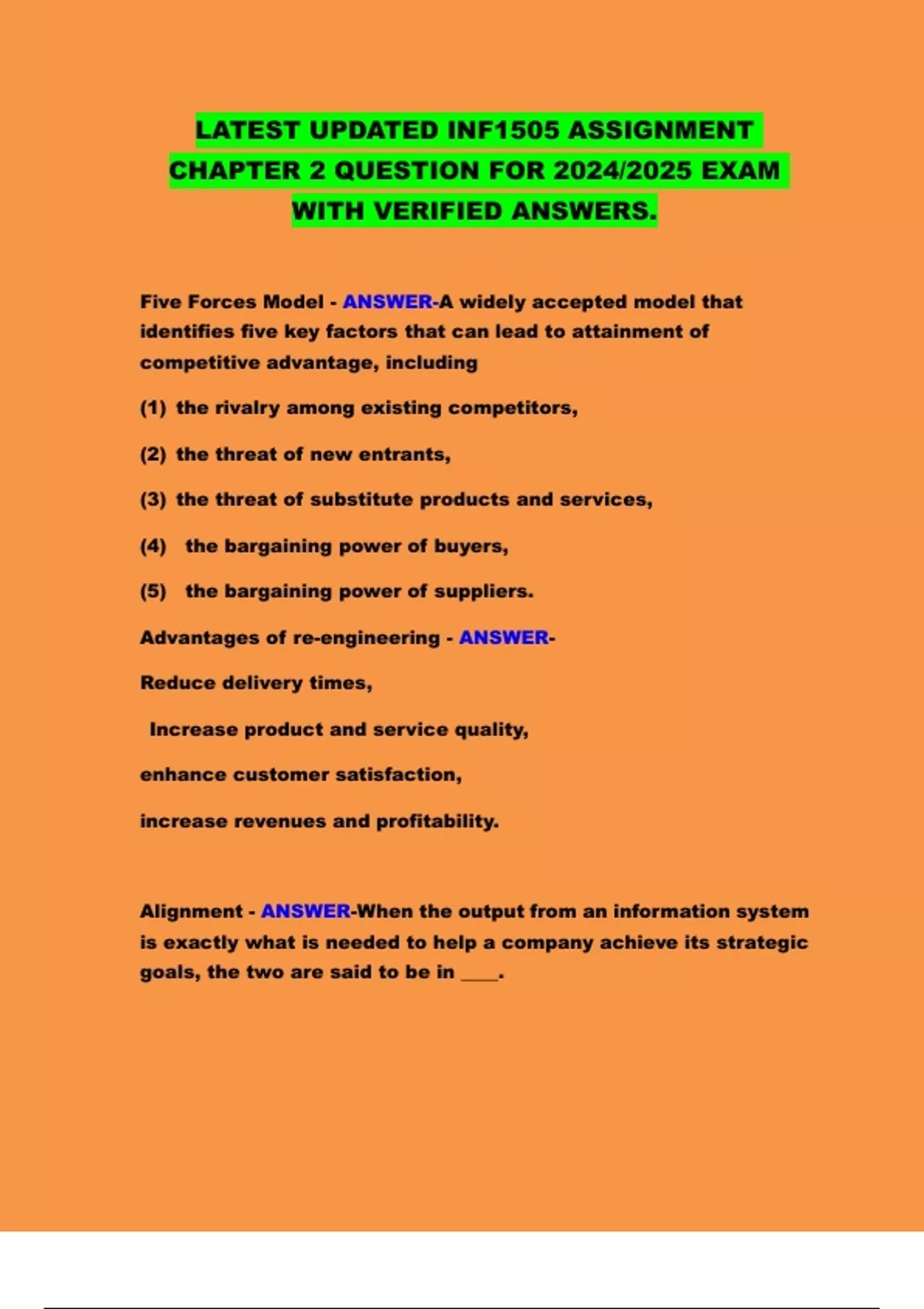 ASSIGNMENT CHAPTER 2 QUESTION FOR THE MOST RECENT INF1505 EXAM WITH CONFIRMED ANSWERS FOR 2024/2025.