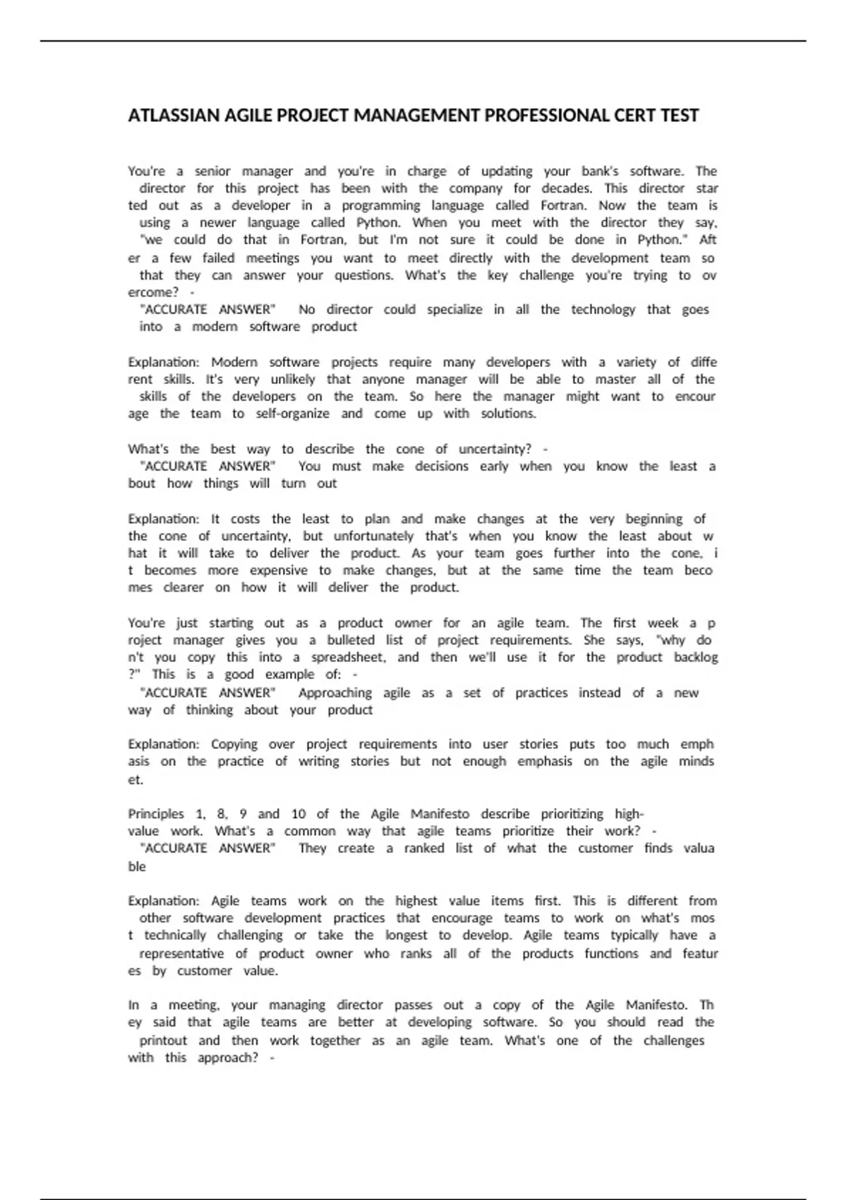 ATLASSIAN AGILE PROJECT MANAGEMENT PROFESSIONAL CE. Questions and Correct Answers.