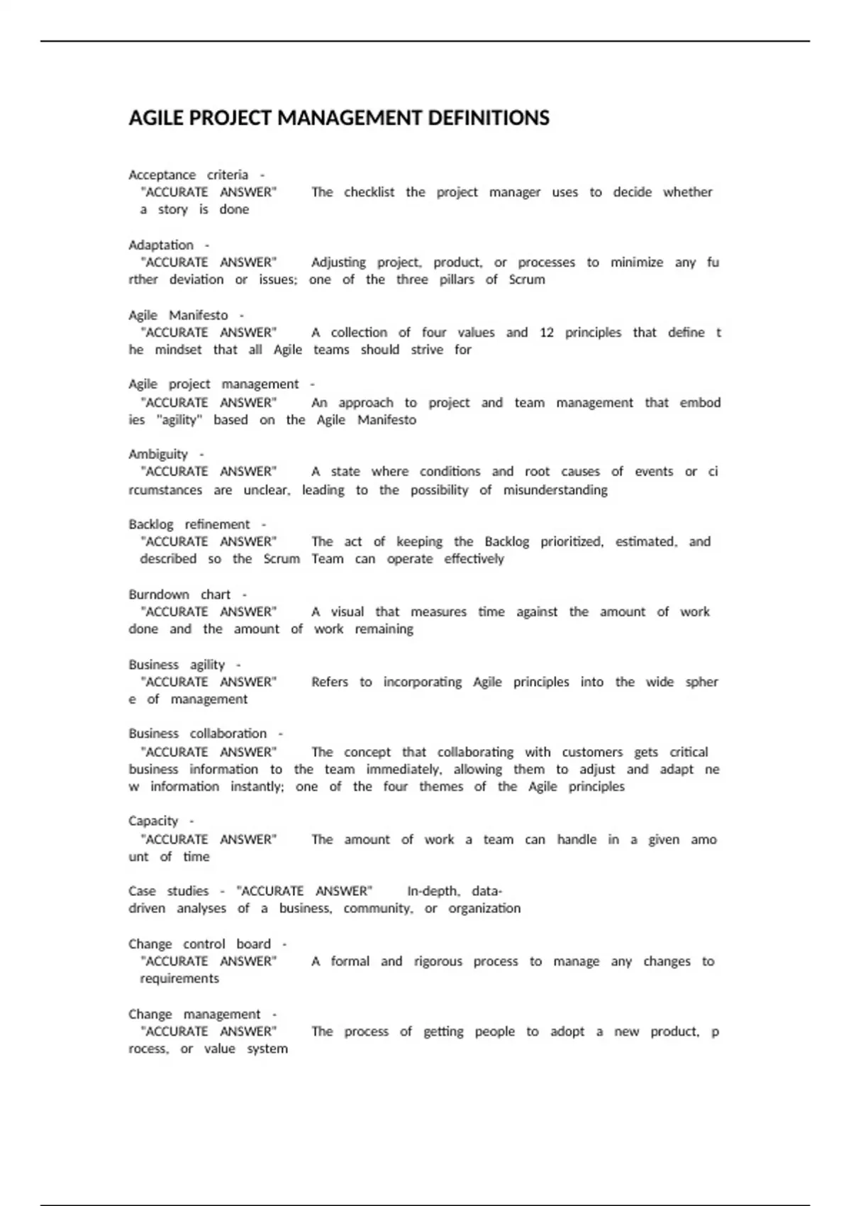 Summary AGILE PROJECT MANAGEMENT DEFINITIONS