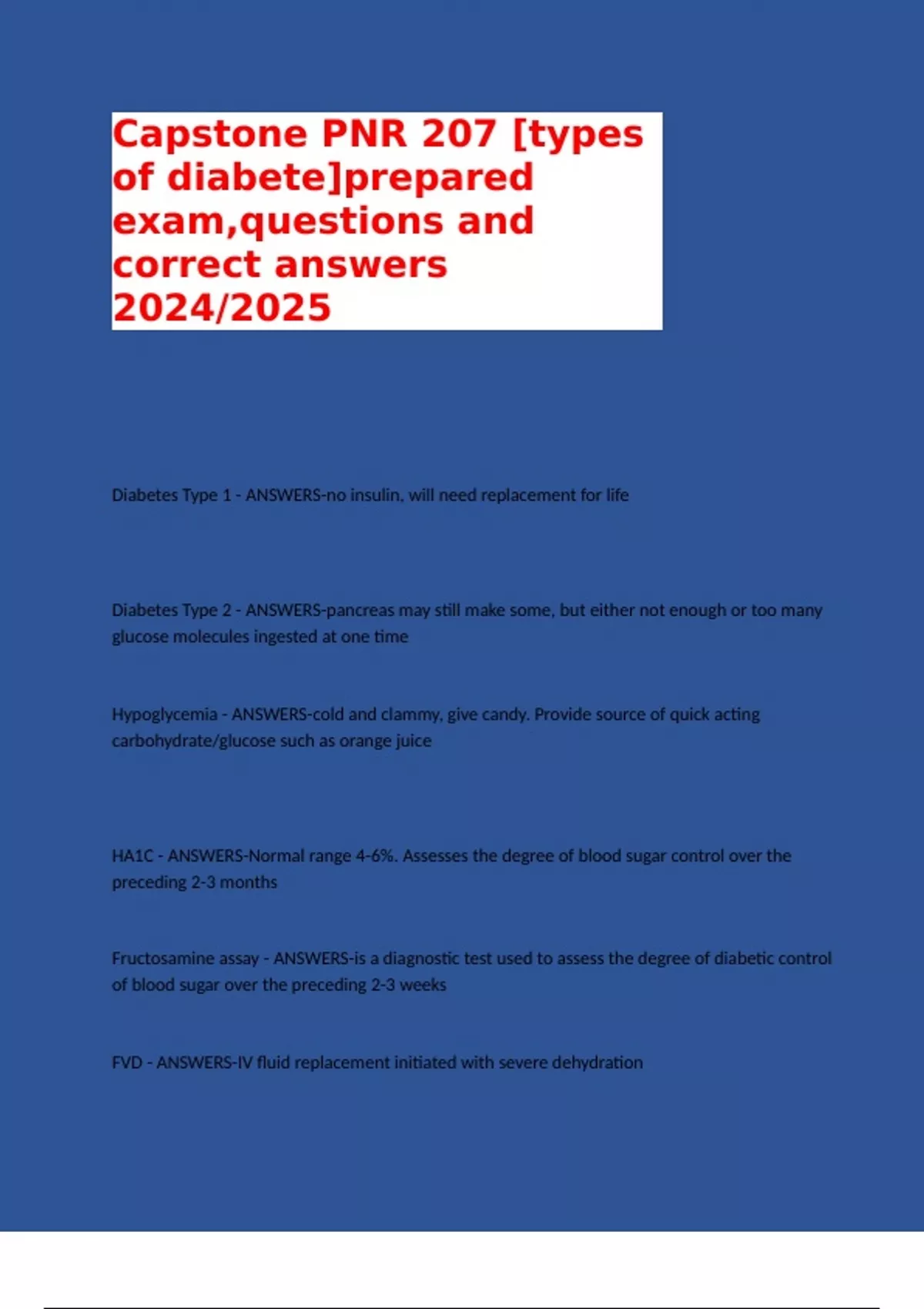 Diabetes Type 1 - ANSWERS-no insulin, will need replacement for life