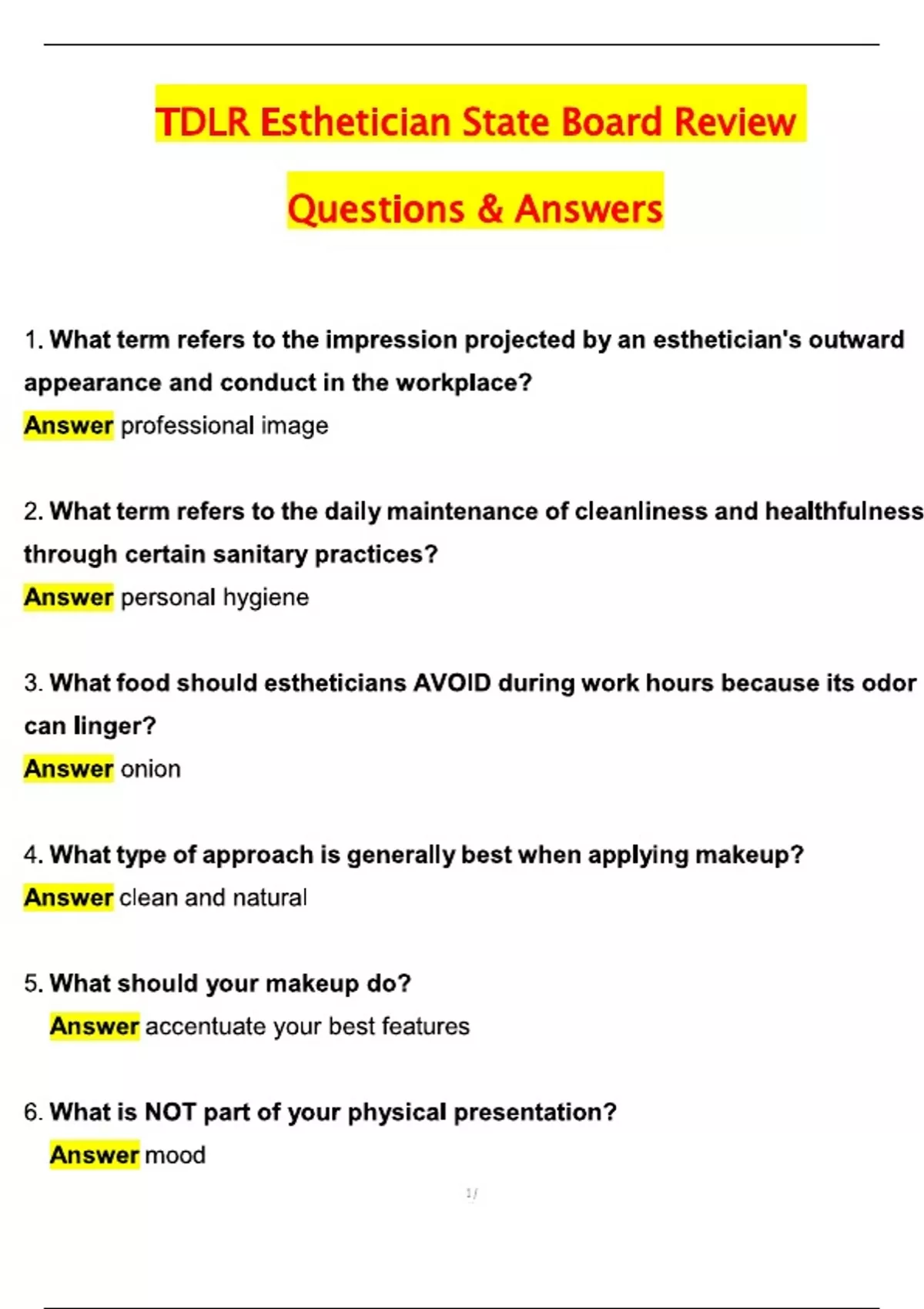TDLR Esthetician State Board Review Exam 2025 Actual with Questions & Answers (Latest 2025 / 2026 Update) Graded A+ (Verified Answers). 2025 TDLR Esthetician exam study guide free PDF download. Latest TDLR Esthetics prep exam questions with answers. TDLR Esthetician state board review practice test 2025. Free TDLR Esthetics laws and regulations study materials. Fully solved TDLR Esthetician exam questions graded A+. TDLR Esthetician actual exam questions 2025 update. Instant download TDLR Esthetics state board exam prep. TDLR Esthetician license exam practice questions free. Comprehensive TDLR Esthetics exam review materials 2025. TDLR Esthetician state board exam tips and tricks. Updated TDLR Esthetics laws study guide for 2025 exam. TDLR Esthetician exam simulator with instant feedback. Free TDLR Esthetics practice tests with explanations. TDLR Esthetician exam preparation course online free. 2025 TDLR Esthetics board exam sample questions PDF. TDLR Esthetician exam flashcards for quick review. TDLR Esthetics state board exam pass rate statistics. TDLR Esthetician exam study plan for 2025 test takers. Free TDLR Esthetics exam prep app for mobile devices. TDLR Esthetician exam frequently asked questions 2025. TDLR Esthetics laws and regulations practice quiz. TDLR Esthetician exam time management strategies. 2025 TDLR Esthetics exam changes and updates guide. TDLR Esthetician exam retake policy and procedures. TDLR Esthetics exam day checklist and preparation tips