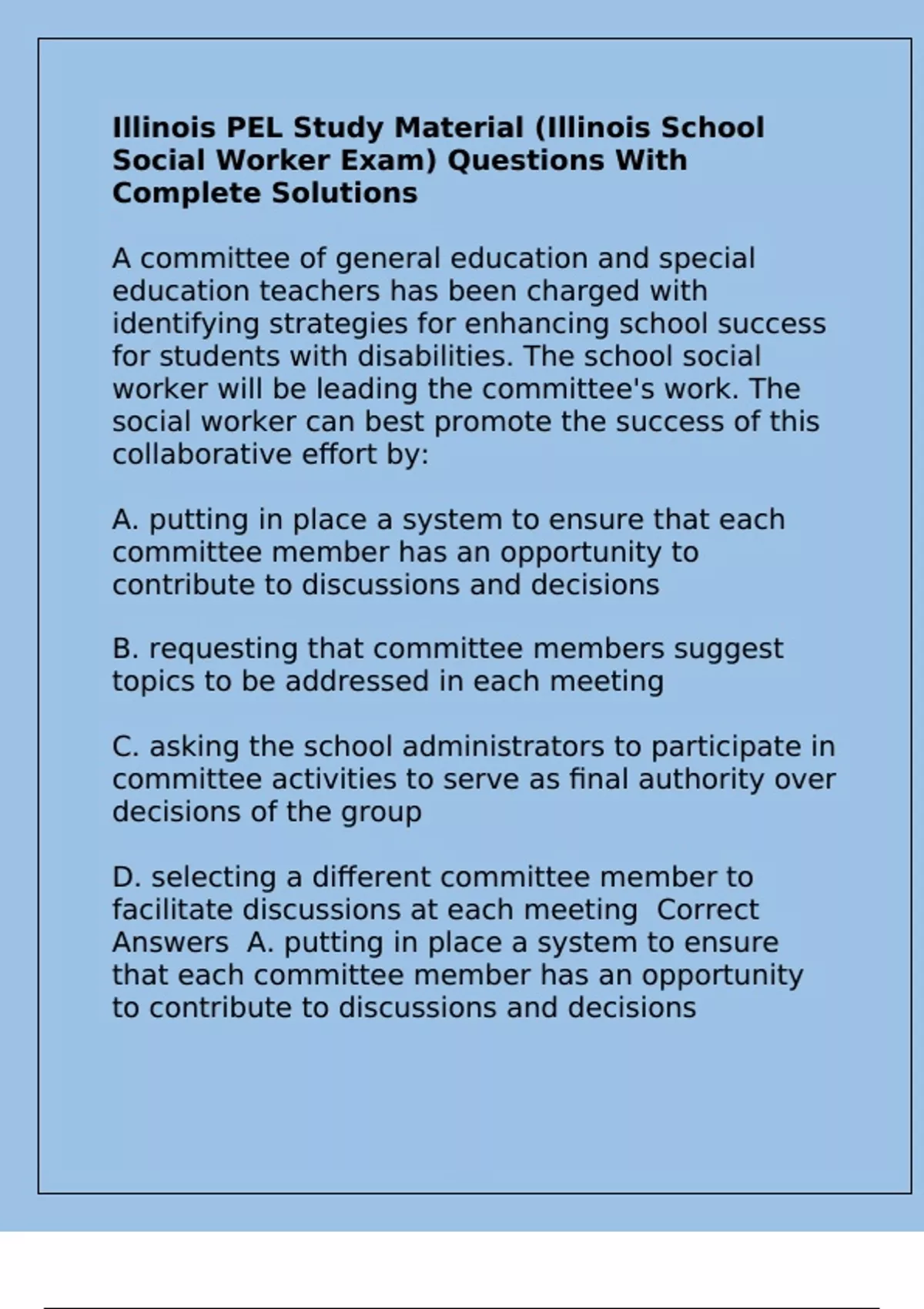 Answers A. putting in place a system to ensure