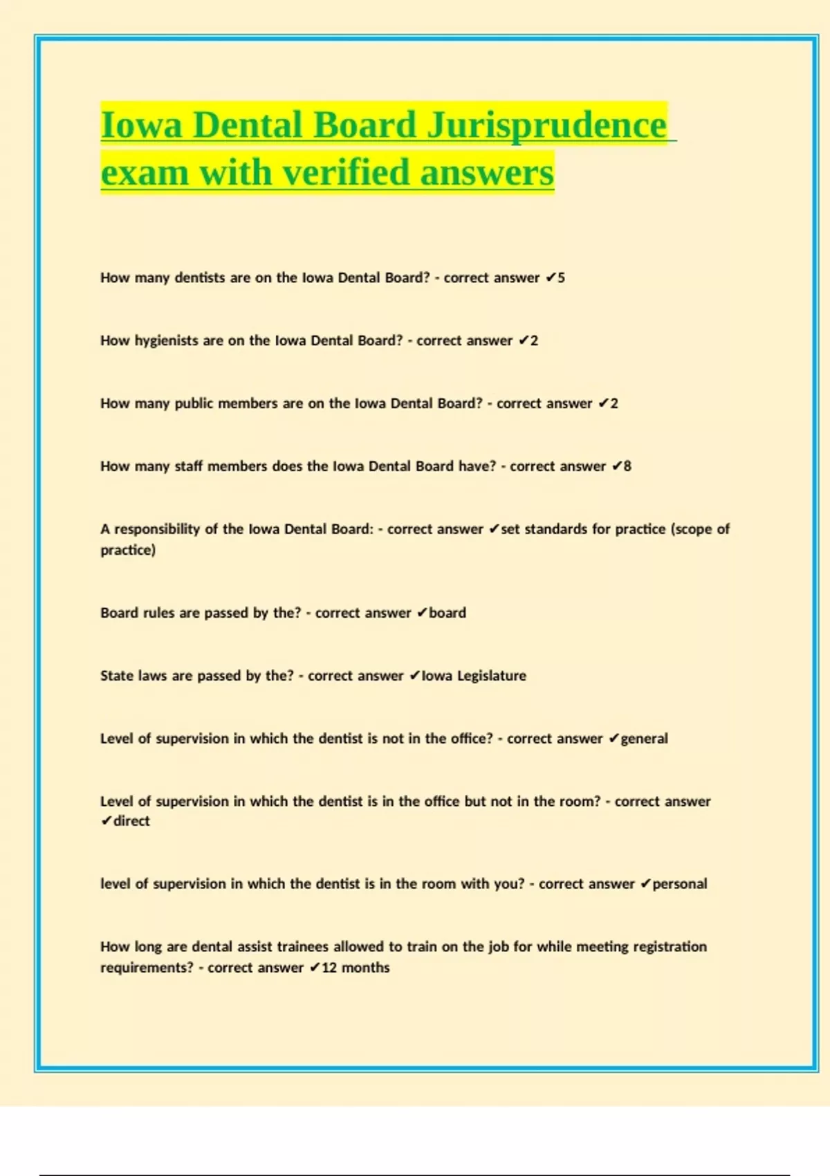 Iowa Dental Board Jurisprudence exam with verified answers