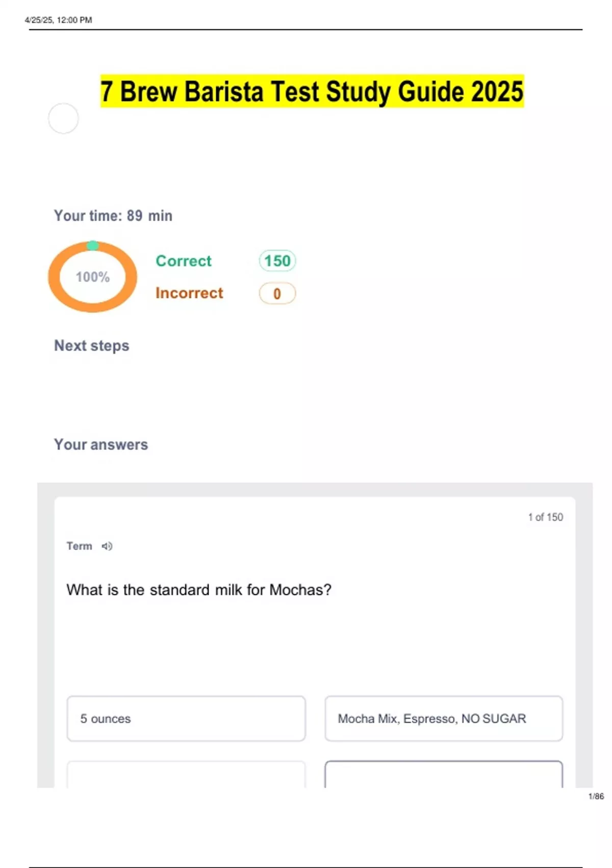 7 Brew Barista Test Study Guide 2025
