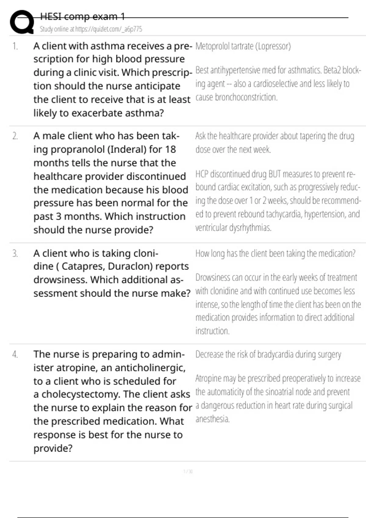 Exam of 30 pages for the course HESI comp at HESI comp (HESI comp exam 1)