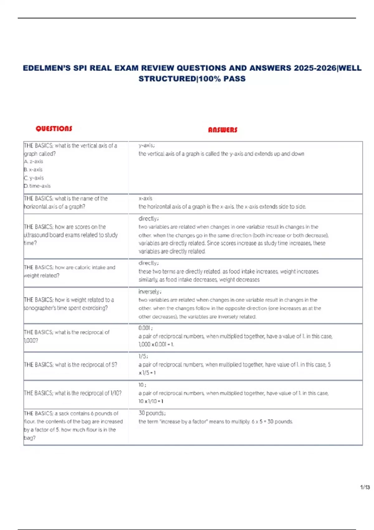 EDELMEN’S SPI REAL EXAM REVIEW QUESTIONS AND ANSWERS |WELL STRUCTURED|100 % PASS