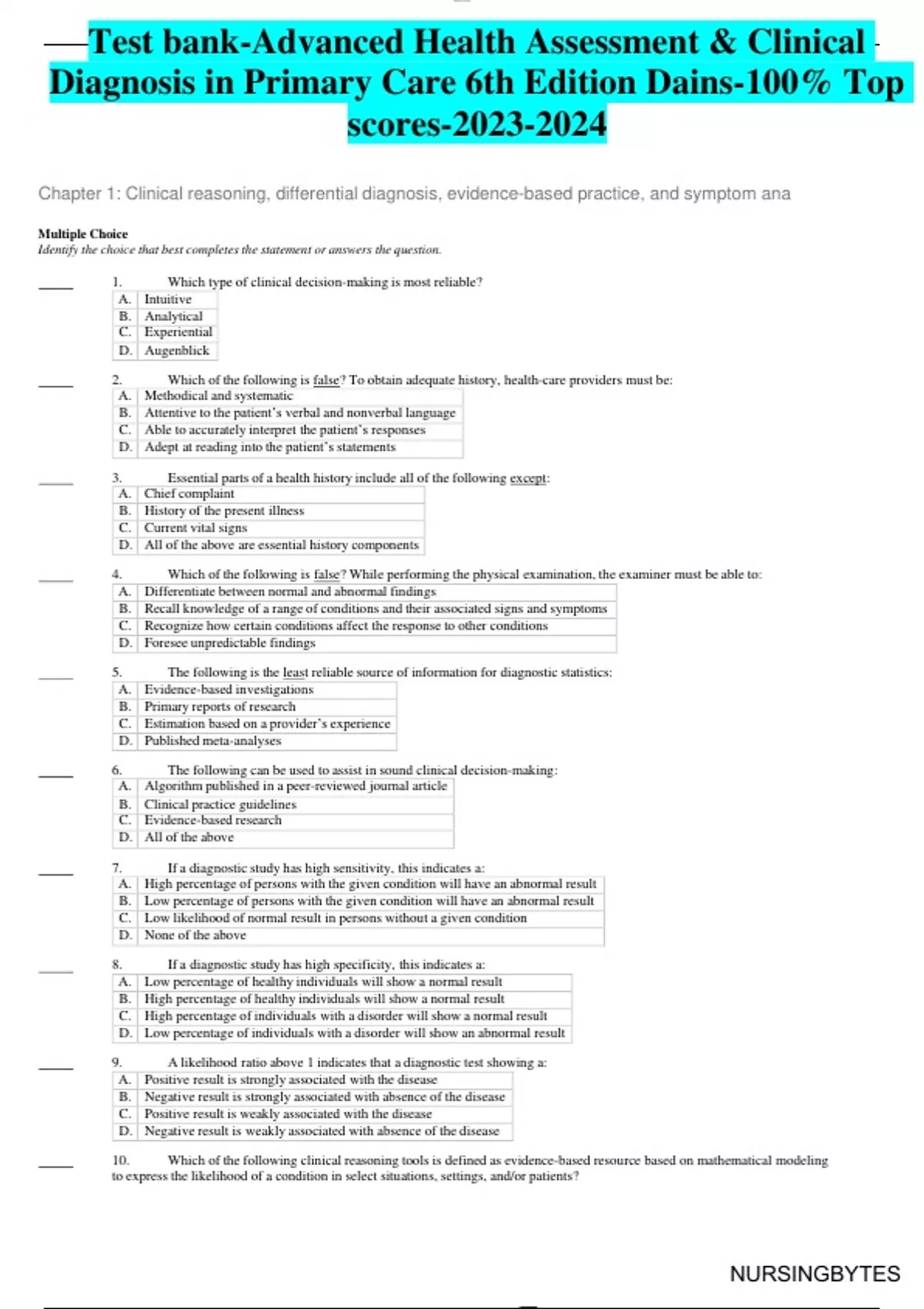 Chapter 1: Clinical reasoning, differential diagnosis, evidence-based practice, and symptom ana