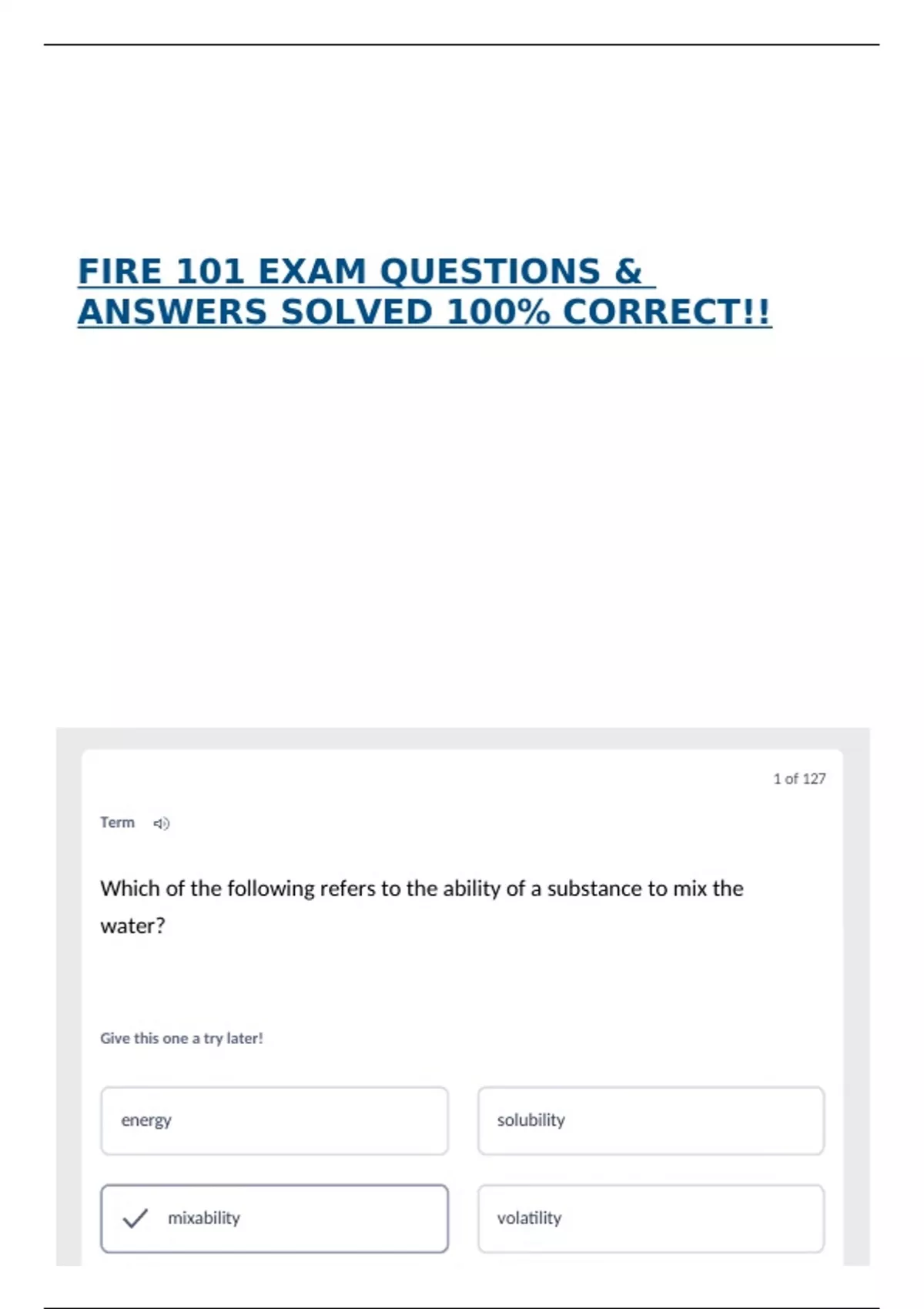 FIRE 101 EXAM QUESTIONS & ANSWERS SOLVED 100% CORRECT!!