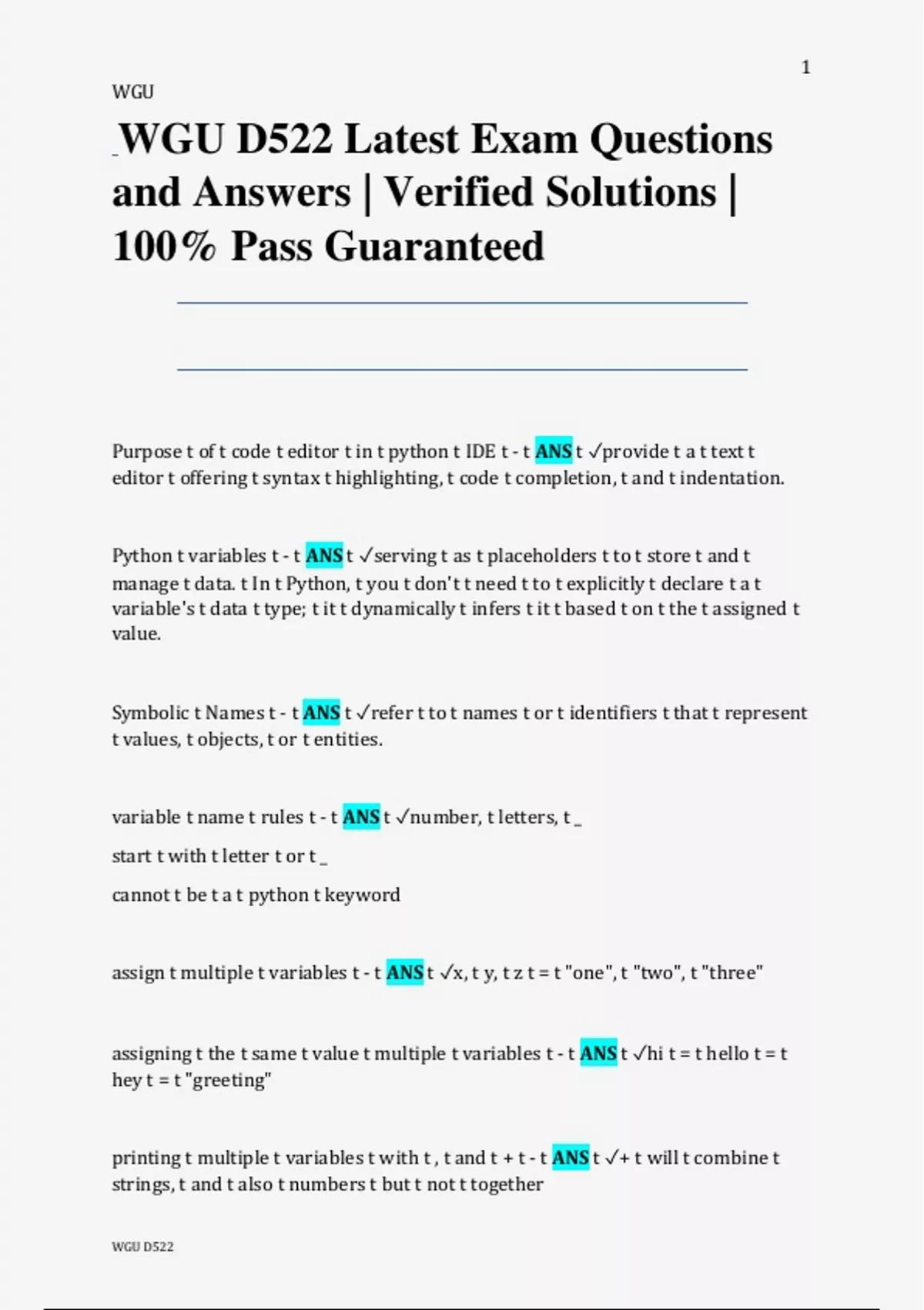 Python variables - ANS ✓serving as placeholders to store and manage data. In