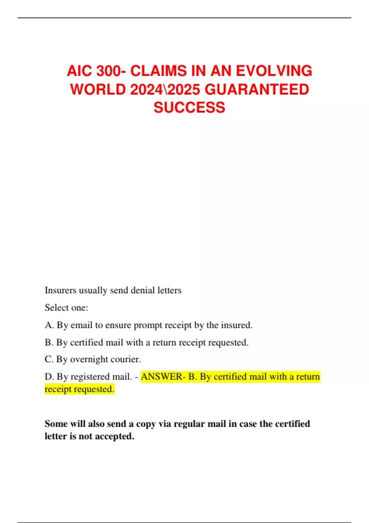 D. By registered mail. - ANSWER- B. By certified mail with a return