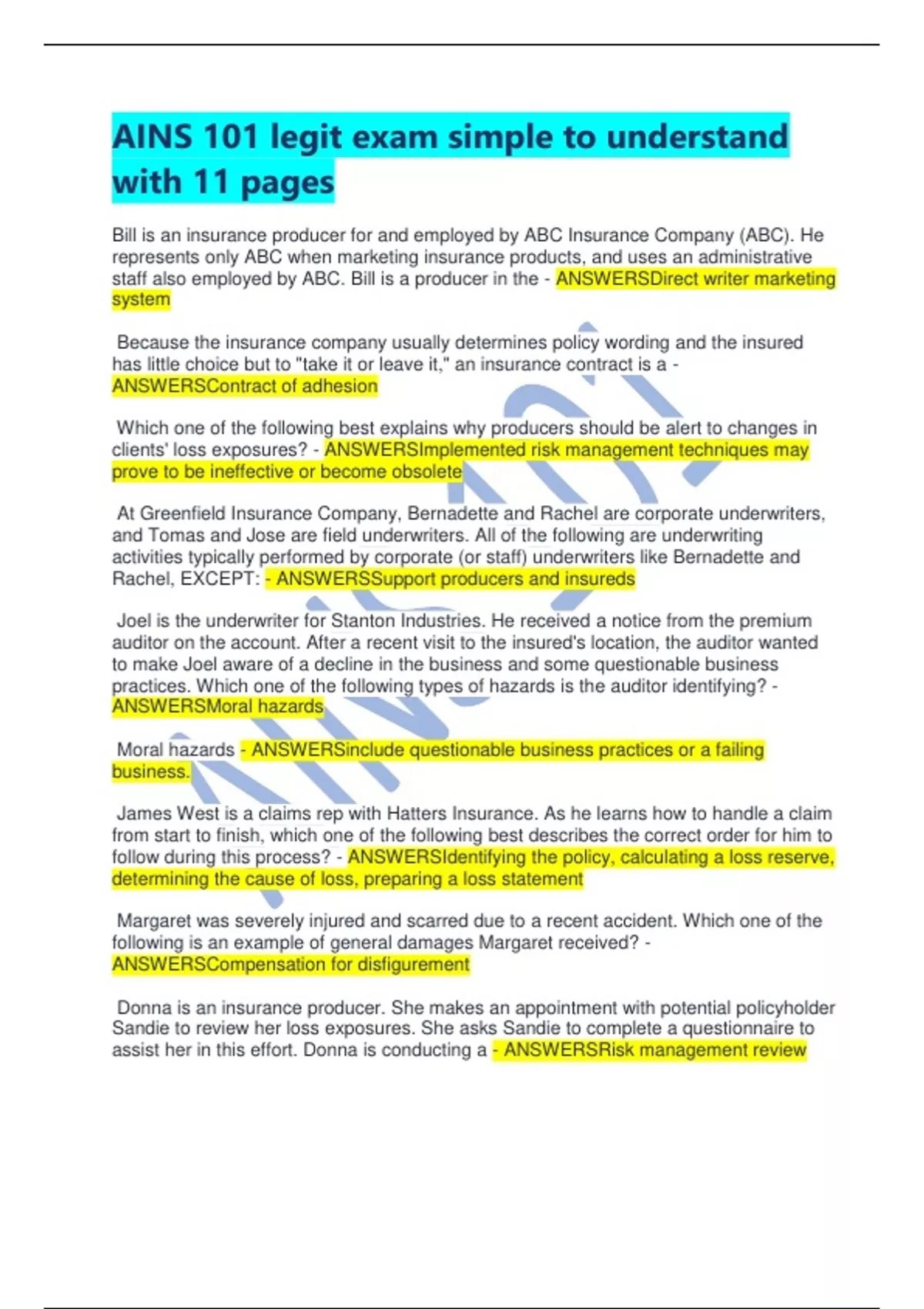 AINS 101 legit exam simple to understand with 11 pages
