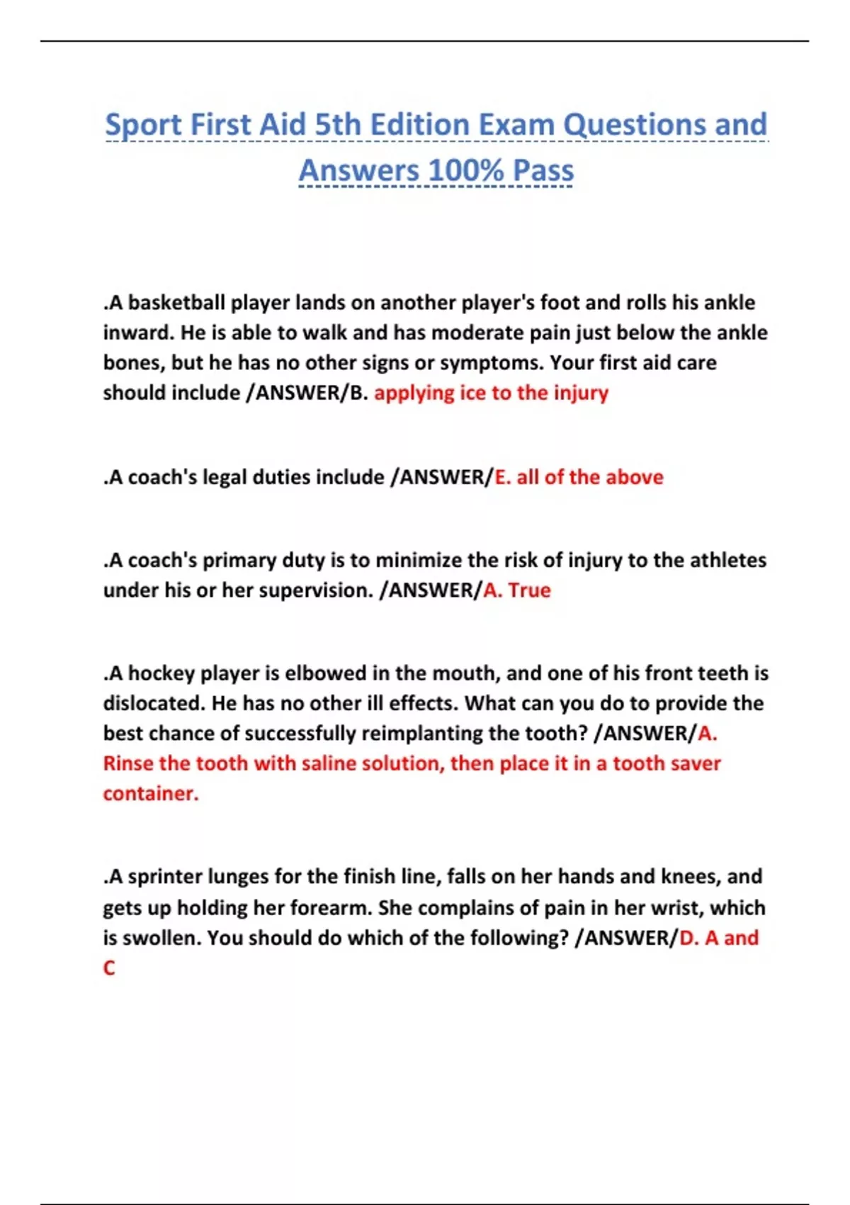 the athlete to a physician. /ANSWER/A. True