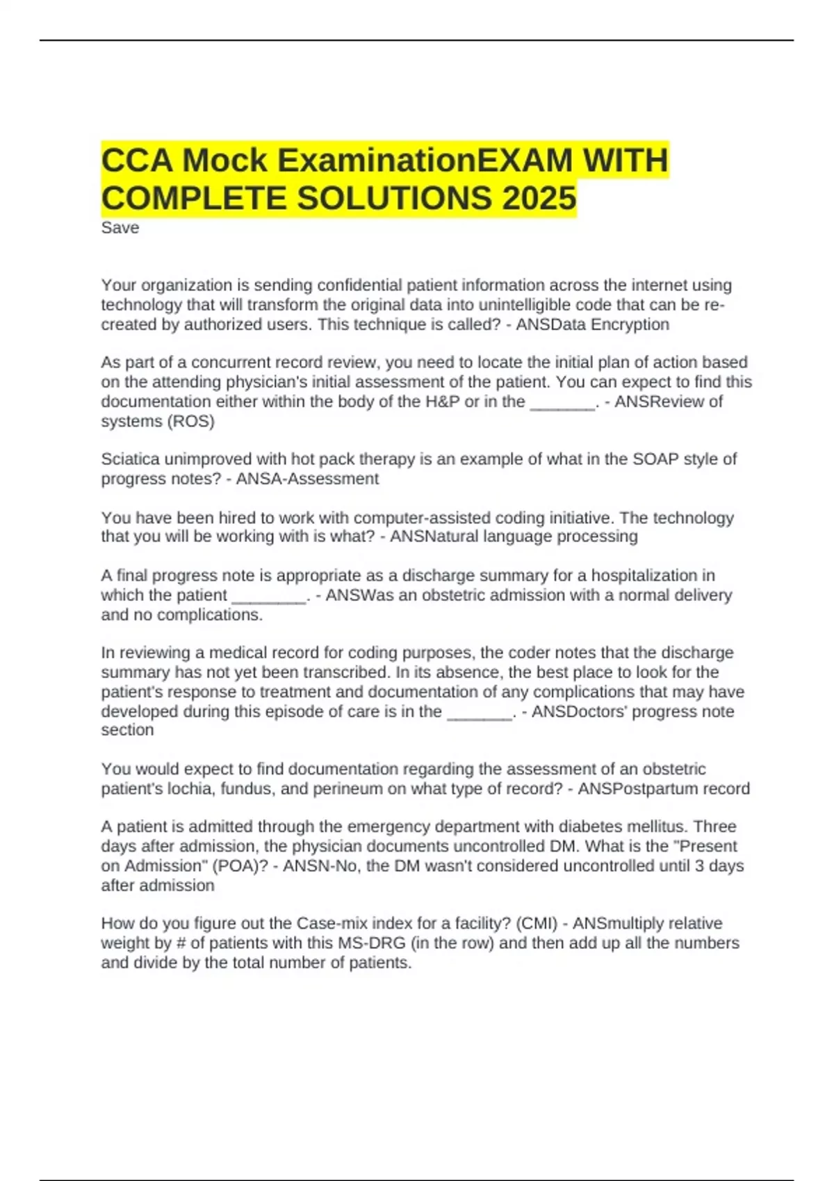 CCA Mock ExaminationEXAM WITH