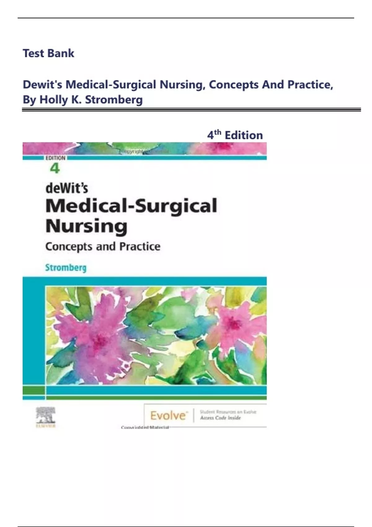 TEST BANK For Dewit's Medical-Surgical Nursing, Concepts and Practice, 4th Edition (Stromberg, ), Verified Chapters 1 - 49, ||Answers With Rationales|| UPDATED