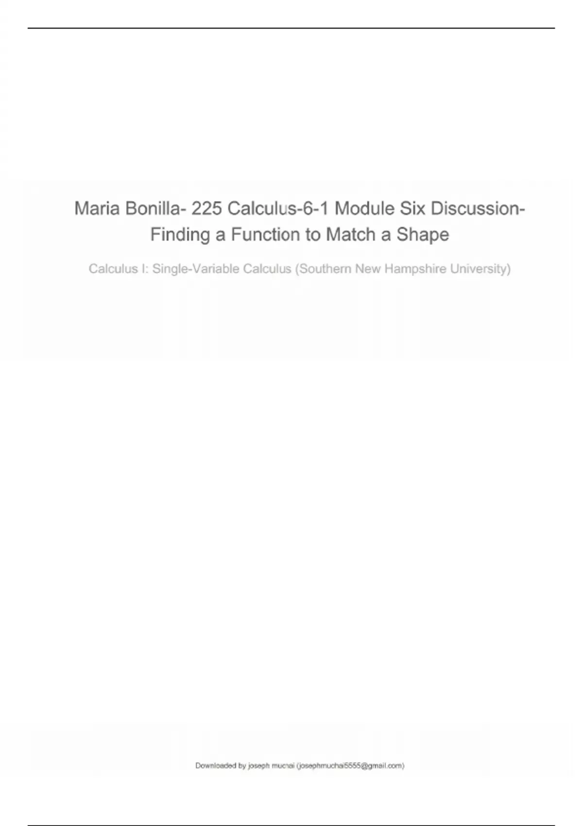 The 6-1 Module Six Discussion in MAT 225 Calculus by Maria Bonilla focuses on applying integral calculus concepts to real-world problems. This discussion encourages students to analyze functions, interpret area under curves, and communicate mathematical reasoning effectively. It’s a crucial assignment that strengthens understanding of definite integrals and their applications in business, science, and engineering. Ideal for quizzes, exams, and discussions, this module reinforces key calculus topics in preparation for assessments in MAT 225.