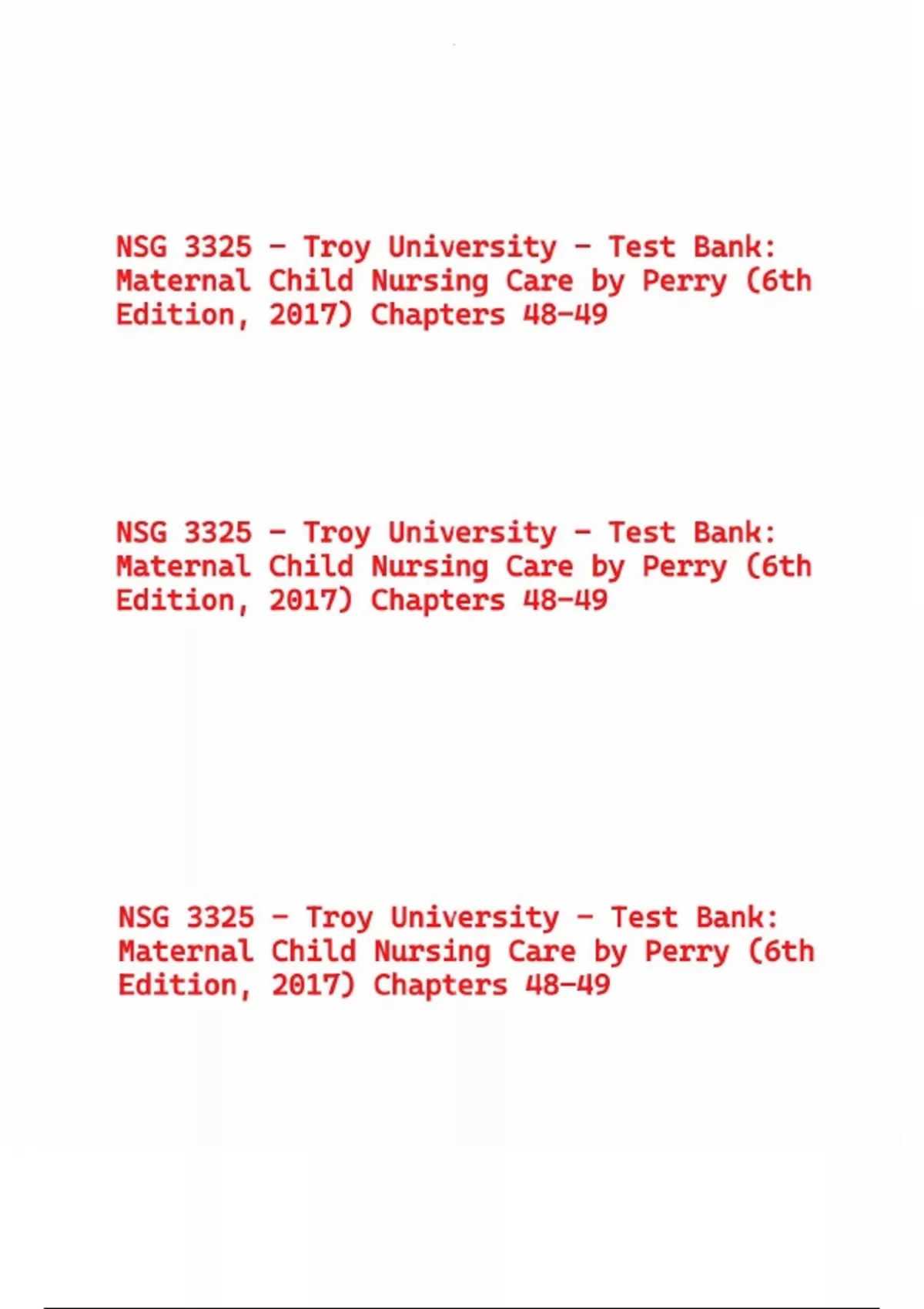 NSG 3325 - Troy University - Test Bank: Maternal Child Nursing Care by Perry (6th Edition, 2017) Chapters 48-49