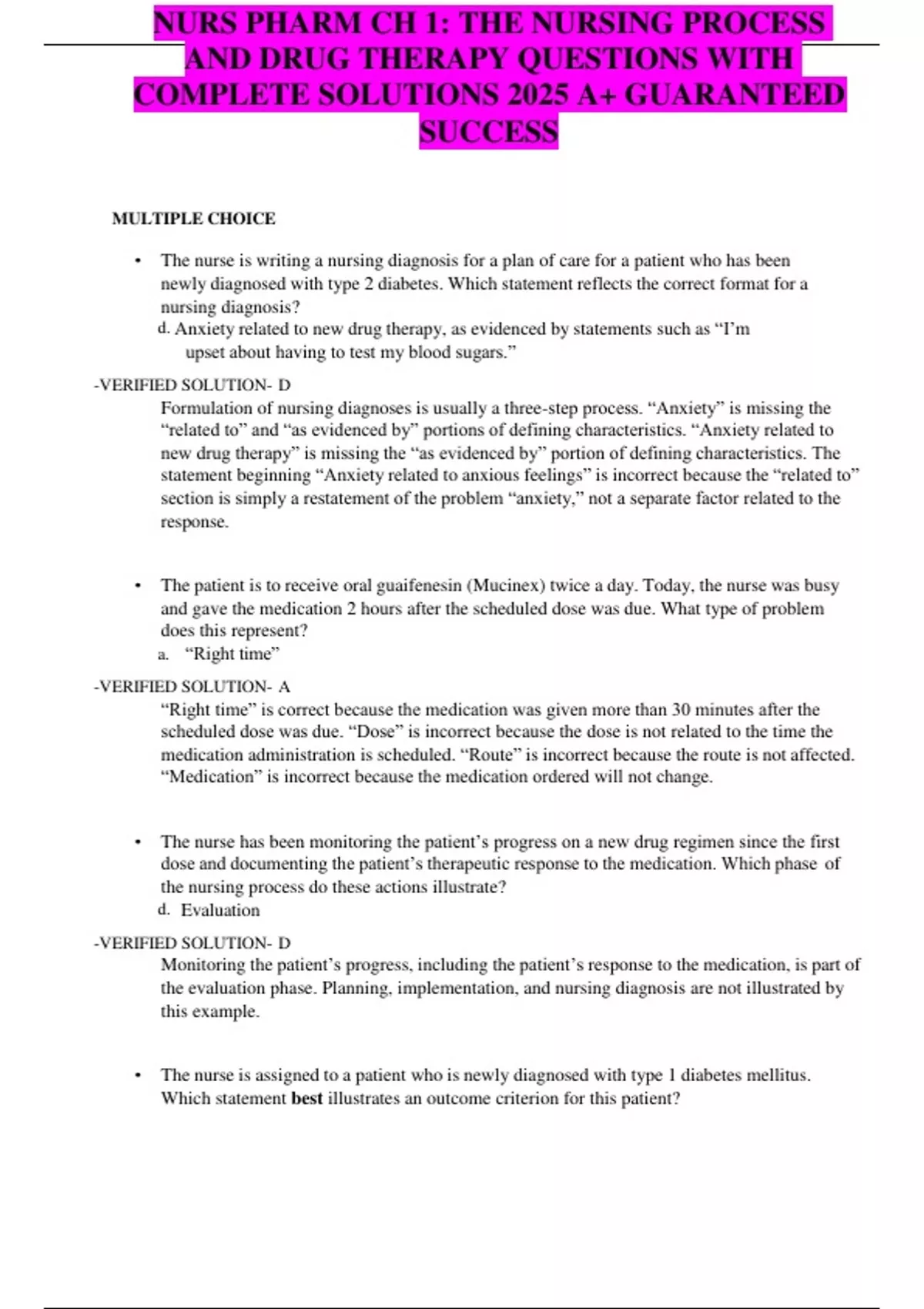 NURS Pharm Chapter 1, nursing process, drug therapy questions, pharmacology 2025, complete solutions, nursing pharmacology, verified answers, RN drug therapy, nursing exam prep, chapter review