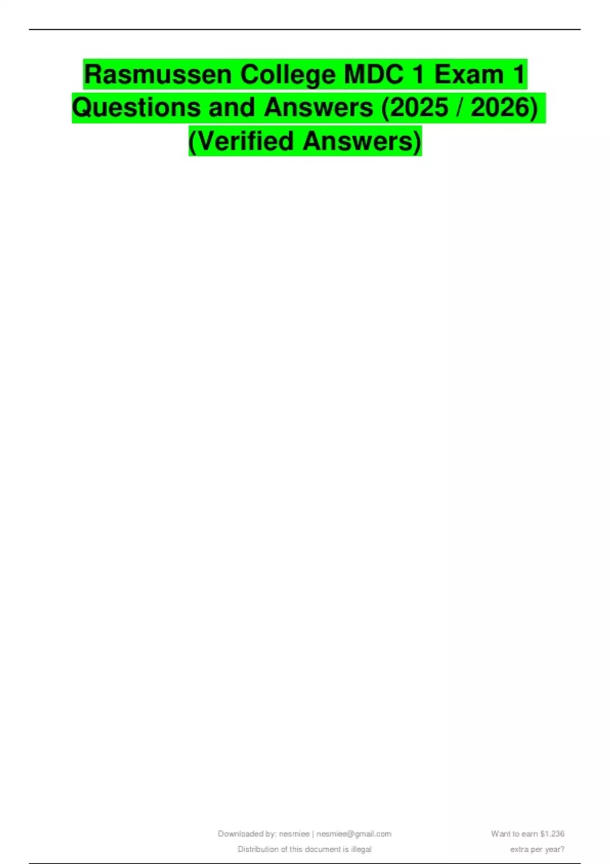 MDC 1 Exam 1, Rasmussen College, 2025 exam, 2026 nursing update, verified answers, nursing exam prep, medical surgical nursing, MDC 1 questions, Rasmussen test review, nursing school exam