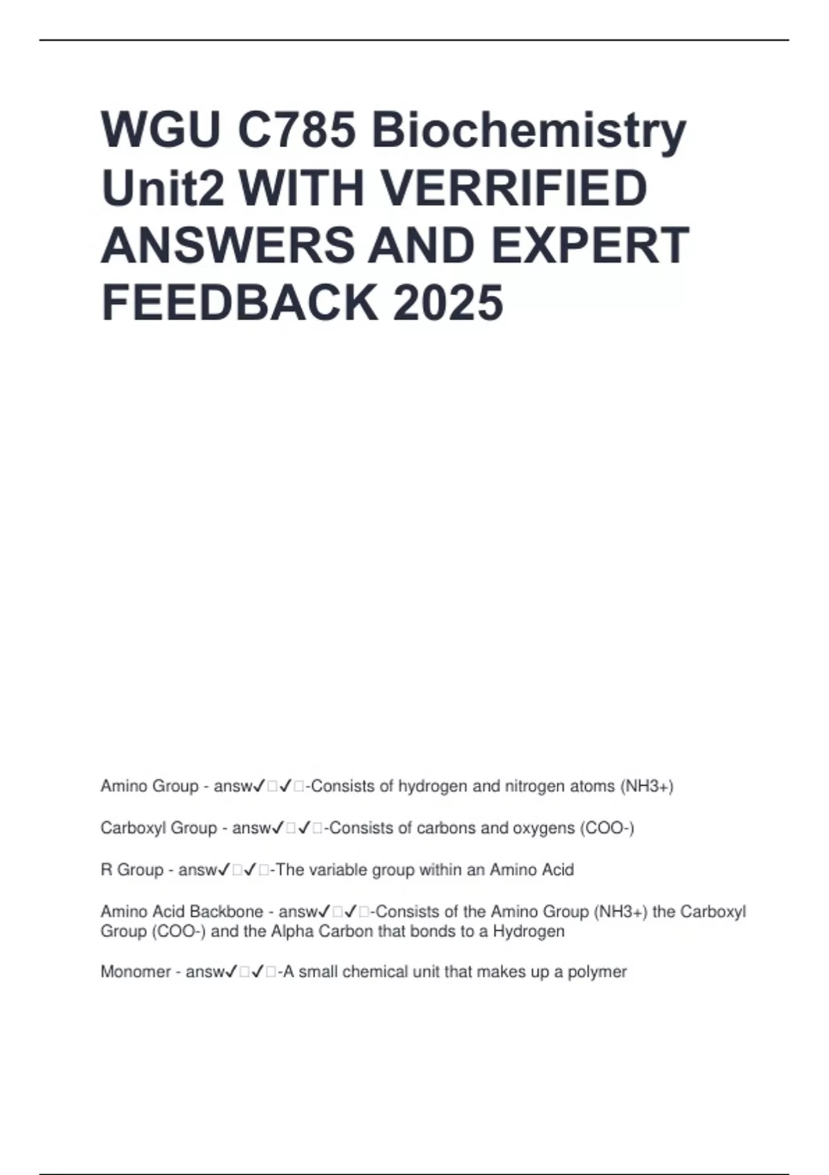 WGU C785 Biochemistry Unit2 WITH VERRIFIED ANSWERS AND EXPERT FEEDBACK 2025