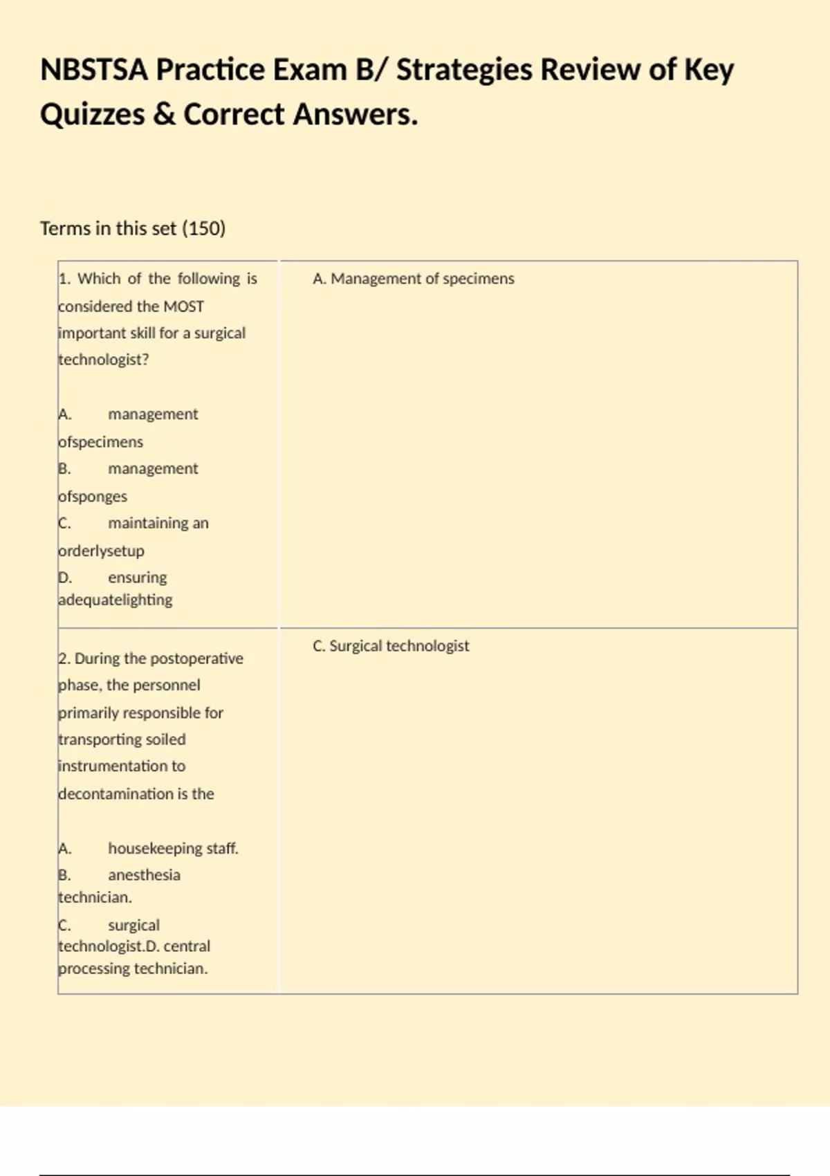 NBSTSA Practice Exam B/ Strategies Review of Key Quizzes & Correct Answers.