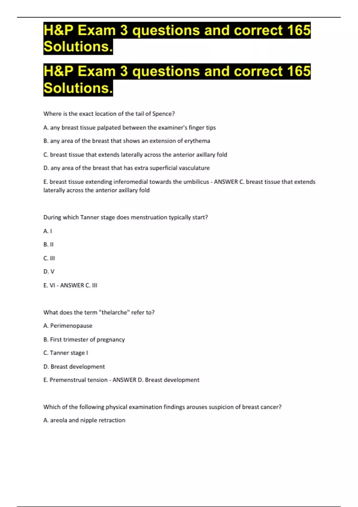 H&P Exam 3 questions and correct 165 Solutions. H&P Exam 3 questions and correct 165 Solutions. H&P Exam 3 questions and correct 165 Solutions. H&P Exam 3 questions and correct 165 Solutions.